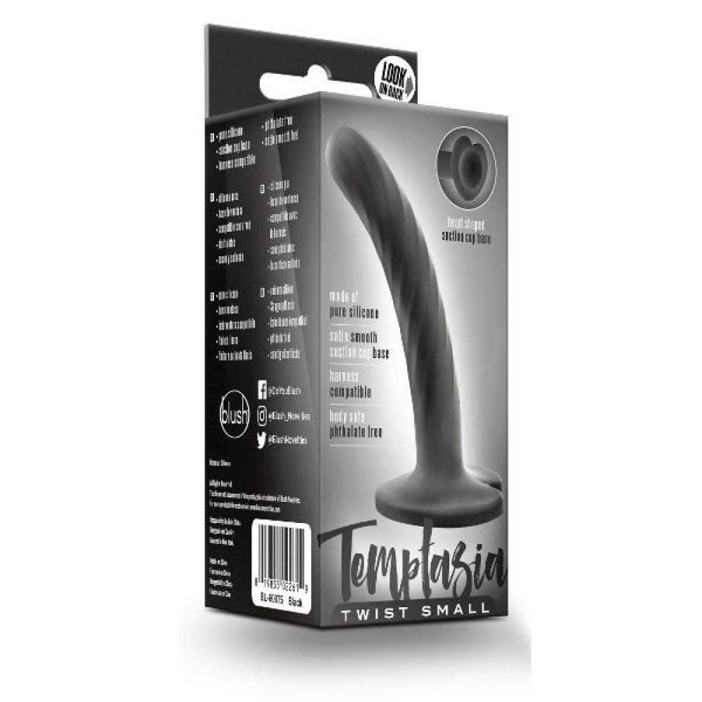 Черный анальный фаллоимитатор на присоске Twist Small. Может использоваться как насадка для трусиков с фиксацией насадок кольцом. Рабочая длина - 9,5 см.