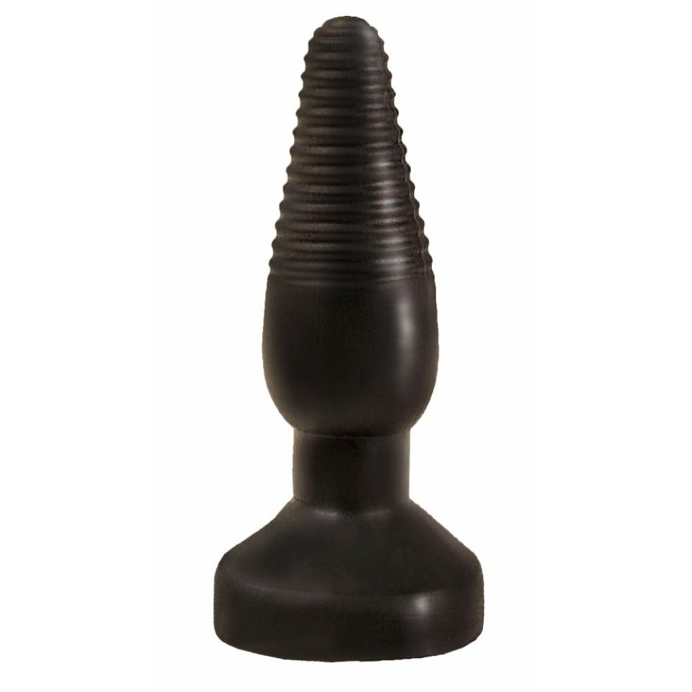 Чёрный анальный плаг с ребристой поверхностью - 14 см.