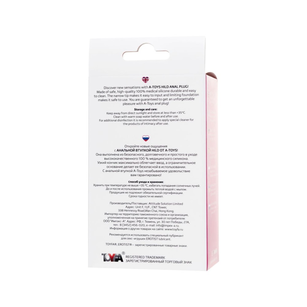 Технические характеристики Розовая анальная втулка Hild - 11 см.