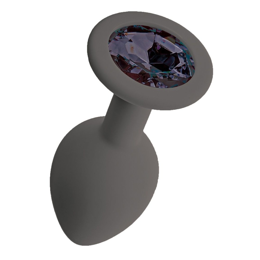 Серая анальная пробка с черным кристаллом Gamma-M - 8,1 см.