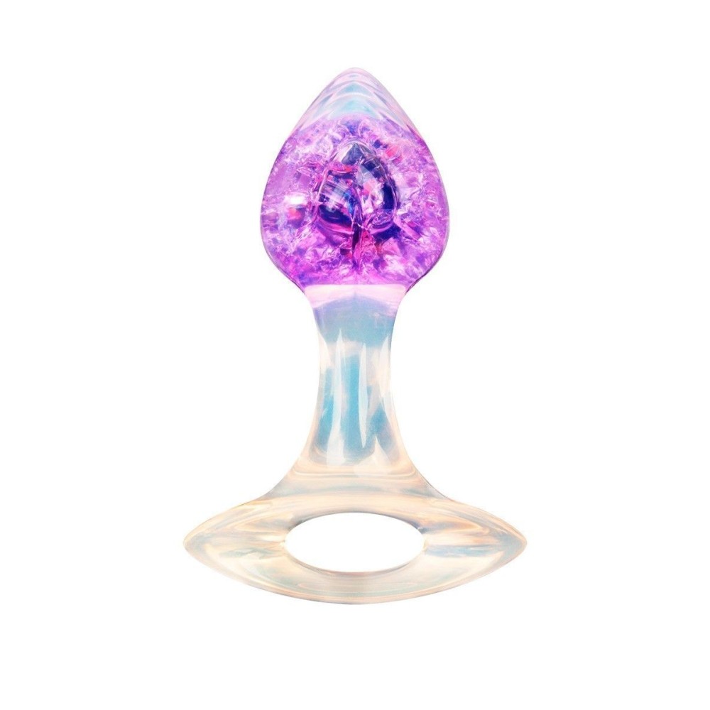 Сиреневатая анальная пробка с ручкой - 8,5 см.