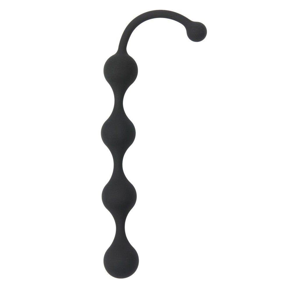 Чёрная анальная цепочка Four Beads Anal Black. 4 гладких шарика на мягкой сцепке, с хвостиком для извлечения. Выполнена из силикона.