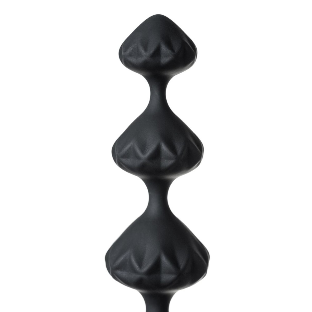 Набор анальных цепочек линейки Love Beads чарующего черного цвета из гипоаллергенного силикона. В комплекте два ожерелья — с гладким и рельефным узором звеньев — для опытных и начинающих любителей анальных стимуляций. Одинаково подходят для женщин и мужчин, желающих испытать новые ощущения и эмоции. Цепочки Satisfyer Love Beads имеют увеличивающийся диаметр звеньев, которые приятно массируют сфинктер и помогают подготовиться к анальному сексу. Для безопасного наслаждения на конце ожерелий есть удерживающие кольца. Они помогут комфортно ввести и извлечь секс-игрушку. Рабочая длина - 14,5 см.