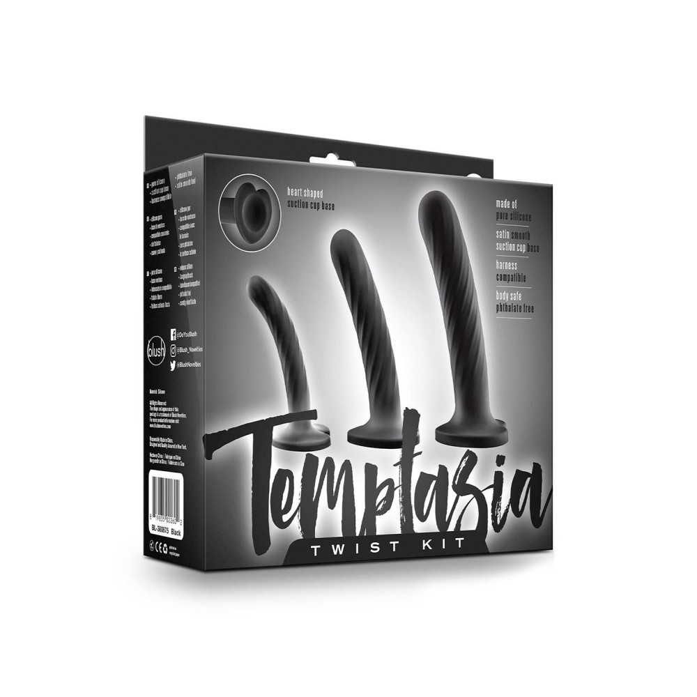 Набор из 3 стимуляторов со спиралевидным рельефом Twist Kit. В набор входят 3 фаллоимитатора разного размера, все с основанием-присоской. Идеальны для анальной стимуляции. Могут использоваться в качестве насадки для пояса харнесс с креплением насадок кольцами или через отверстие. Длина малого стимулятора - 9,5 см, диаметр - 1,9 см.