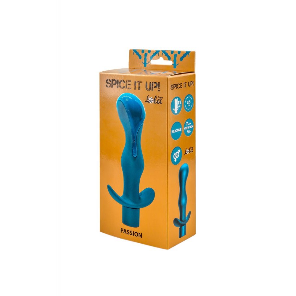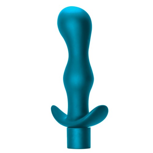 Бирюзовая фигурная анальная пробка с вибрацией Passion - 14 см.