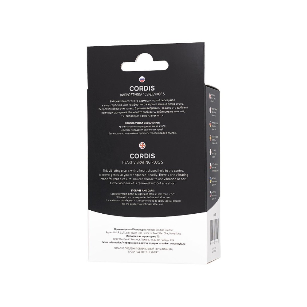 Вибровтулка Cordis S создана для тех, кто ценит качество и комфорт. Благодаря продуманной форме и эффективной вибрации, она подарит незабываемые ощущения как при solo-использовании, так и в паре.