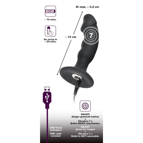 Анальная реалистичная вибровтулка выполнена из мягкого и скользкого материала. Имеет изогнутую головку и выраженный рельеф, снабжена мощным мотором, заряжается с помощью USB-провода (в комплекте). Рабочая длина - 12,5 см.