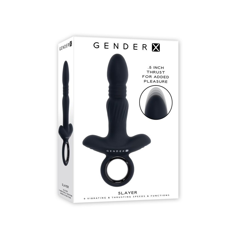 Черный анальный вибростимулятор Slayer с поступательными движениями — это премиальный девайс длиной 20 см и диаметром 3.3 см для интенсивной стимуляции. Выполнен из гипоаллергенного анодированного пластика и силикона, обеспечивающего максимальный комфорт. Оснащен встроенным аккумулятором и функцией вибрации для усиления ощущений. Подходит для обоих полов, упакован в стильную картонную коробку. Идеален для анального использования и произведен в США с гарантией качества.