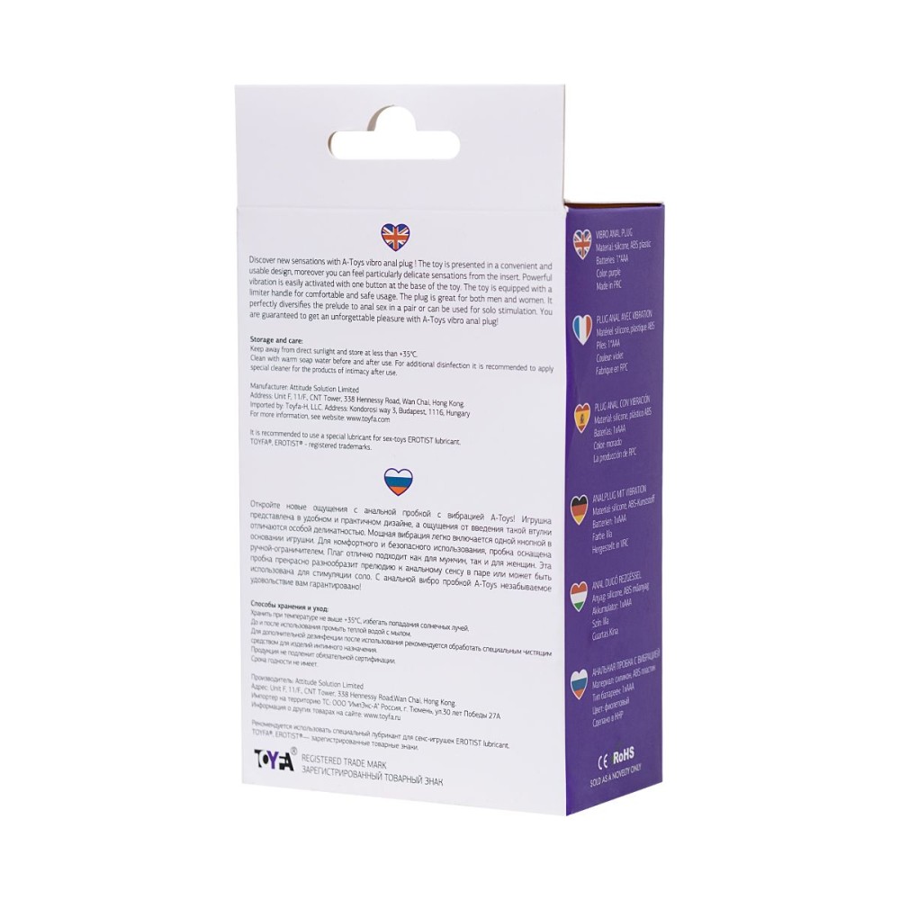 Оснащена вибрацией для дополнительного удовольствия, работает от 1 батарейки типа AAA. Диаметр 2,70 см и длина 11,20 см делают пробку удобной как для начинающих, так и для опытных пользователей. Подходит для обоих полов.