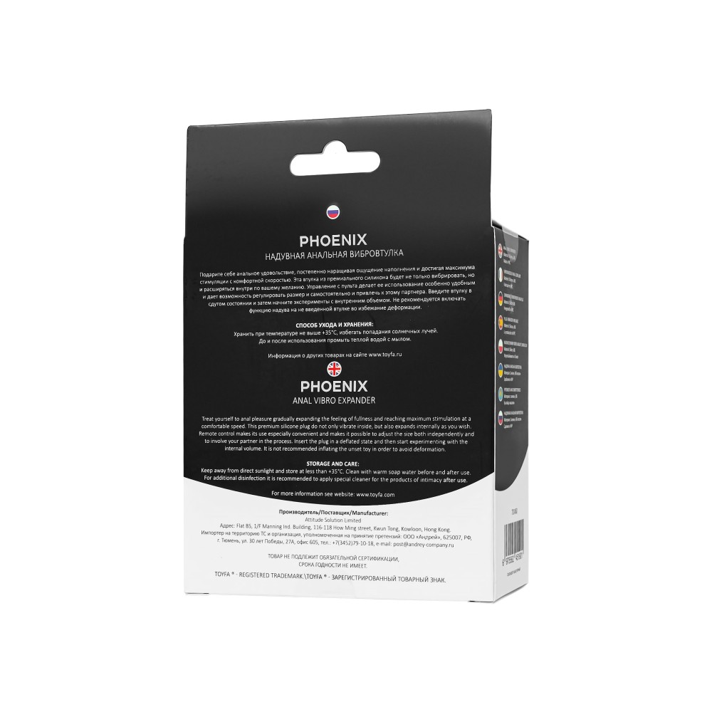 Откройте новые грани удовольствия с инновационной анальной вибровтулкой Phoenix! Идеально подходит для пар и соло-исследований. Изготовлена из высококачественного силикона, приятного на ощупь и безопасного для тела.