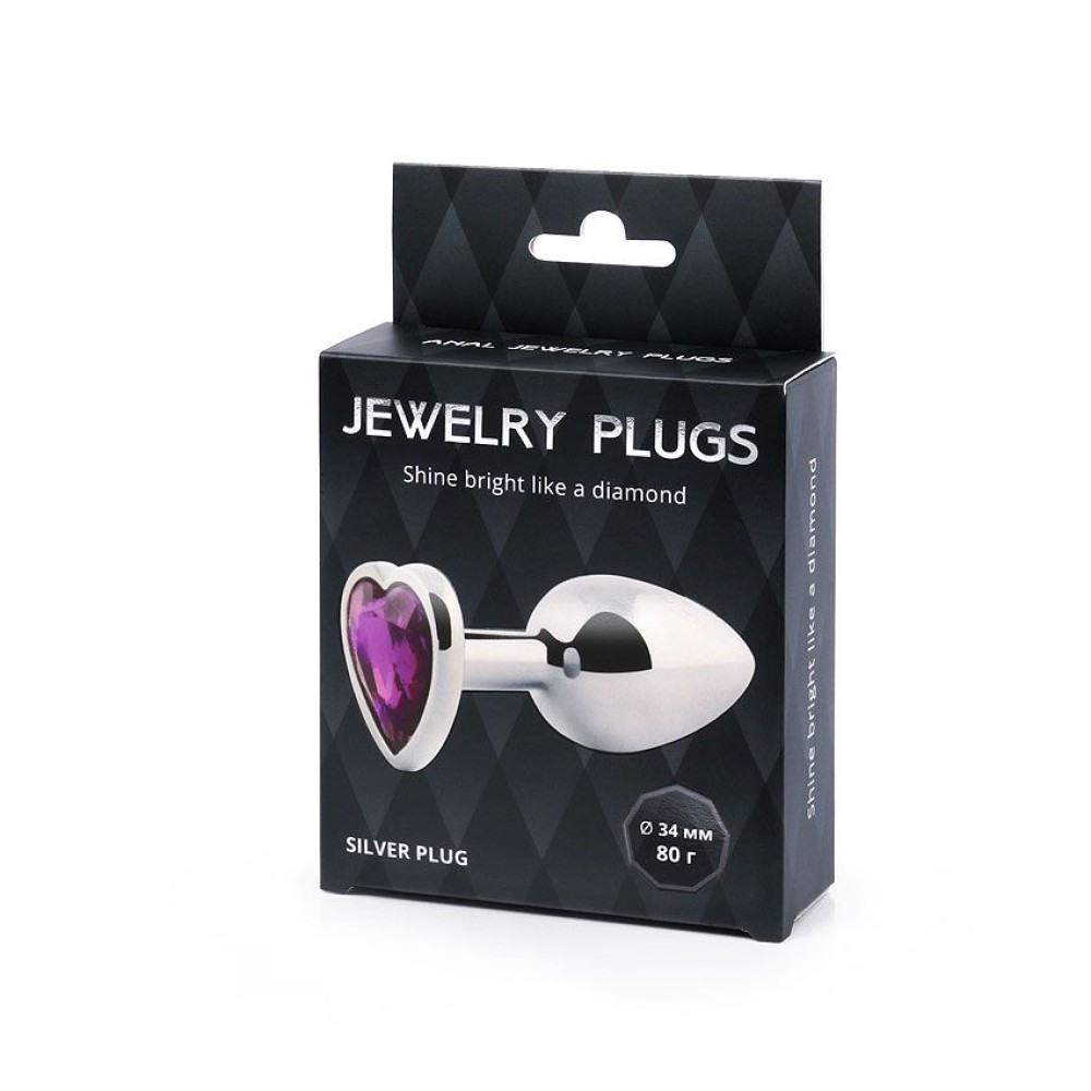 Технические характеристики Серебристая анальная пробка с фиолетовым кристаллом-сердечком - 8 см.
