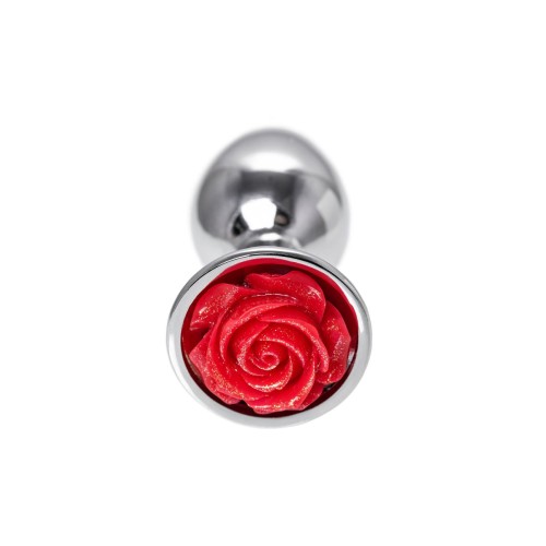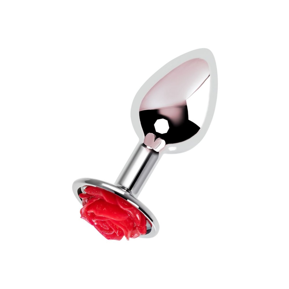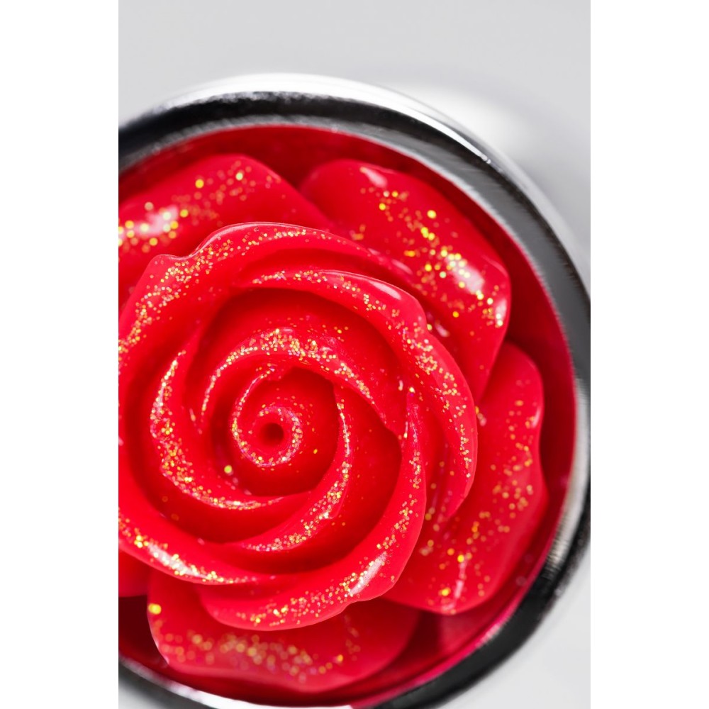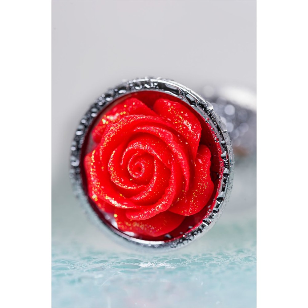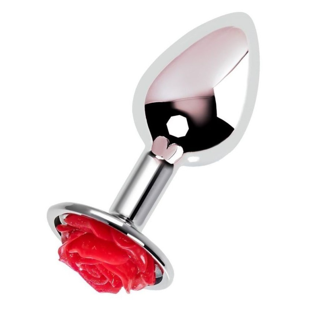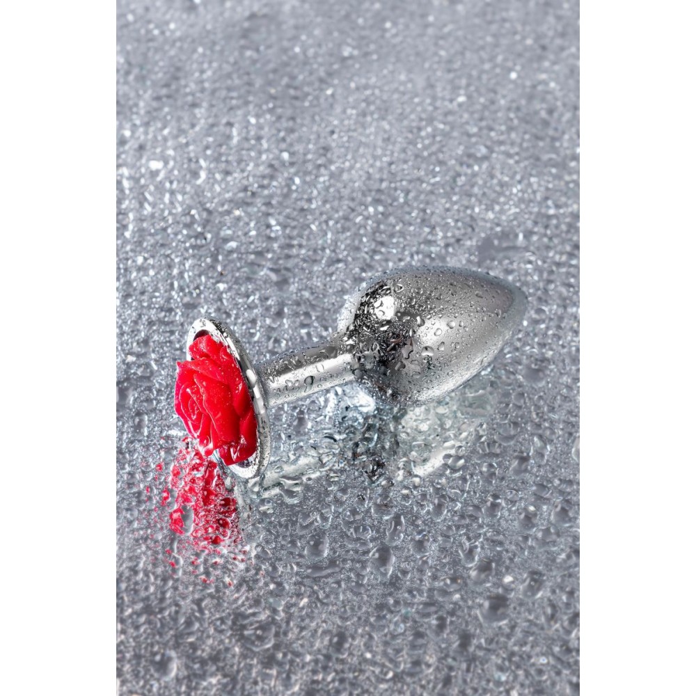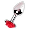 Серебристая анальная втулка с красной розочкой - 8 см.