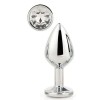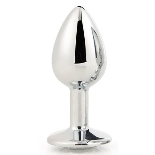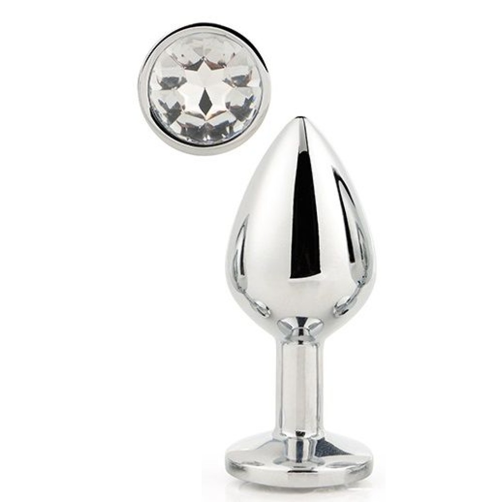 Серебристая анальная втулка с прозрачным кристаллом - 7,1 см.
