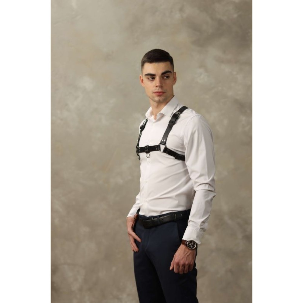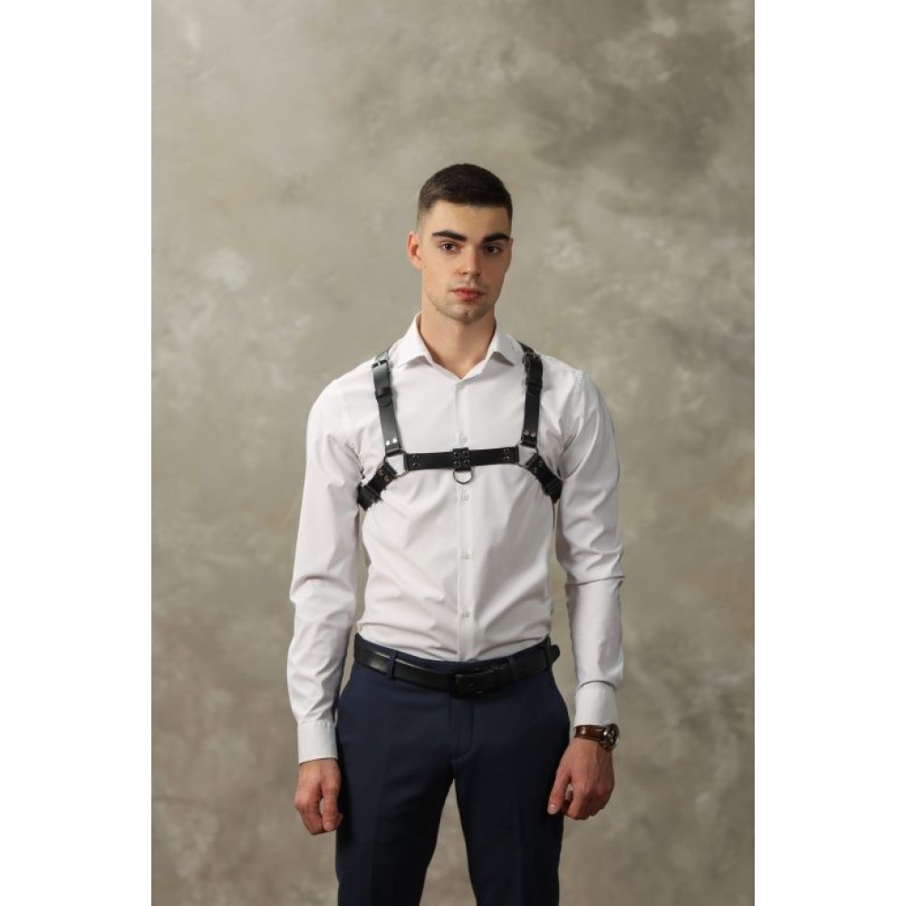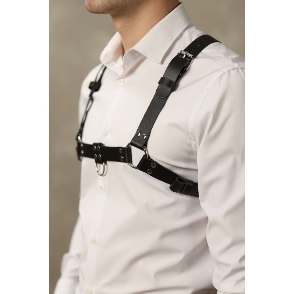 Черная мужская кожаная портупея №4 — стильный аксессуар для смелых экспериментов. Изготовлена из натуральной кожи и металла, эта портупея сочетает прочность и эстетику. Российский бренд и производство гарантируют качество. Упакована в картонную коробку для удобства хранения. Идеальна для садомазохистских сцен, подчеркивает мужественность и добавляет остроты в интимную жизнь. Подходит для ролевых игр и БДСМ-практик.