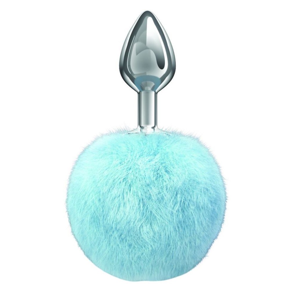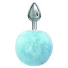 Серебристая анальная пробка с голубым пушистым хвостиком Twinkle