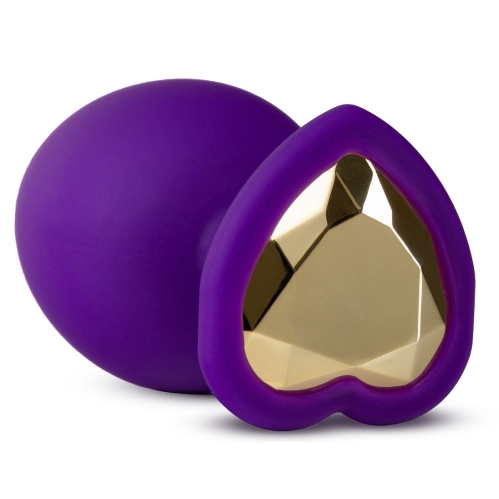 Фиолетовая анальная пробка Bling Plug Medium с золотистым стразом - 8,3 см.