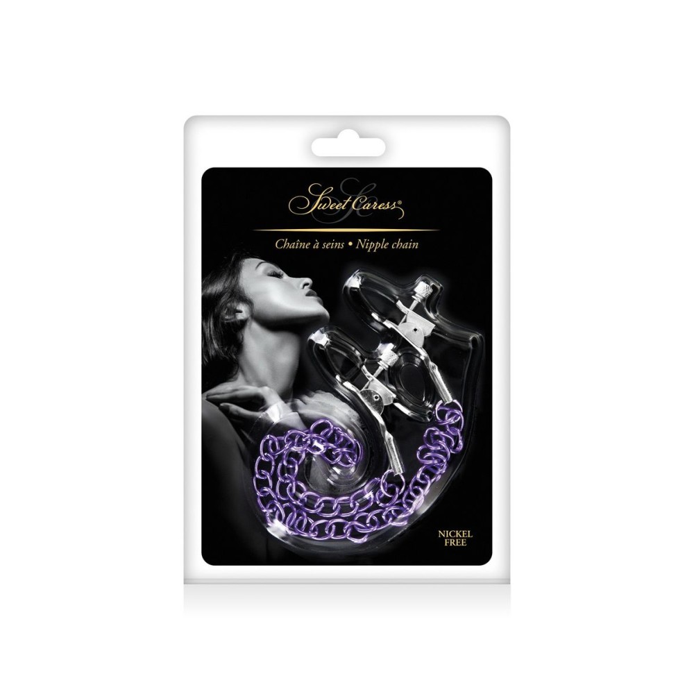 Зажимы для сосков с фиолетовой цепочкой Sweet Caress Nipple Chain