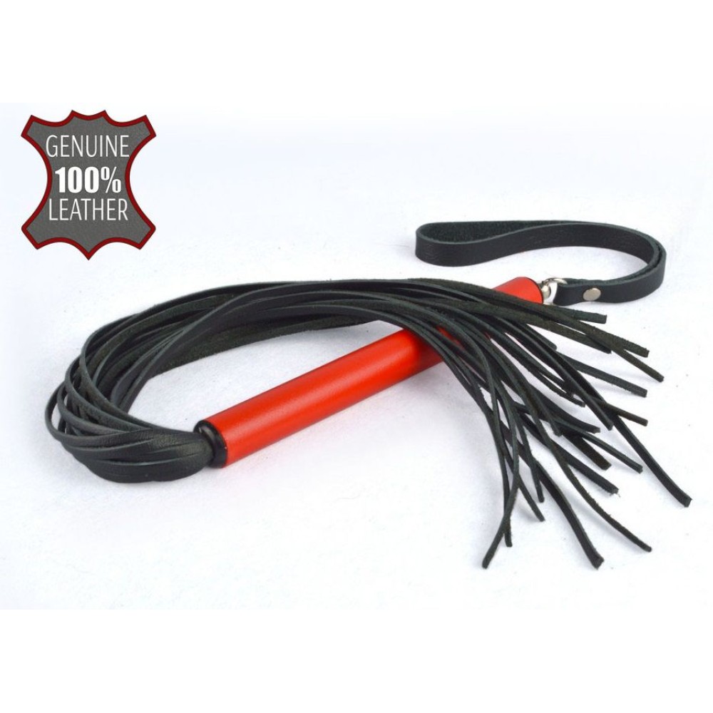 Длина изделия — 47 см, что обеспечивает удобство использования и контроль. Изготовлена из натуральной кожи высокого качества, которая приятна на ощупь и долговечна. Яркая красная рукоять контрастирует с черным цветом плети, добавляя эстетики и уверенного хвата.
