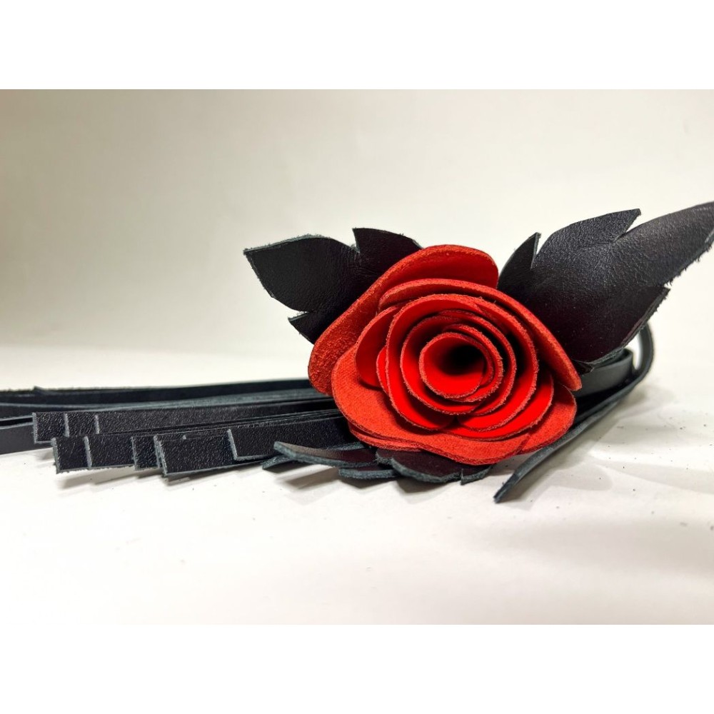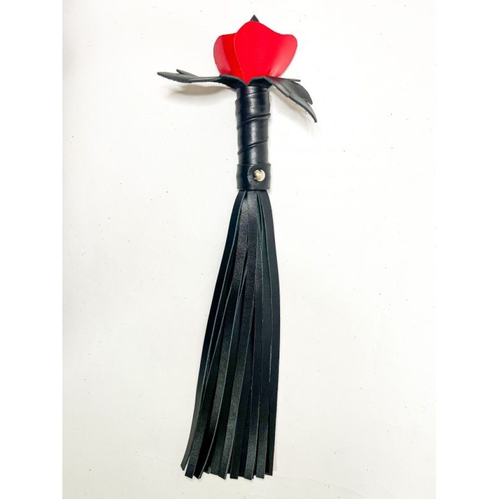 Черная кожаная плеть с красной лаковой розой в рукояти - 40 см.