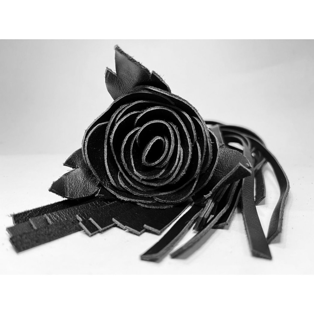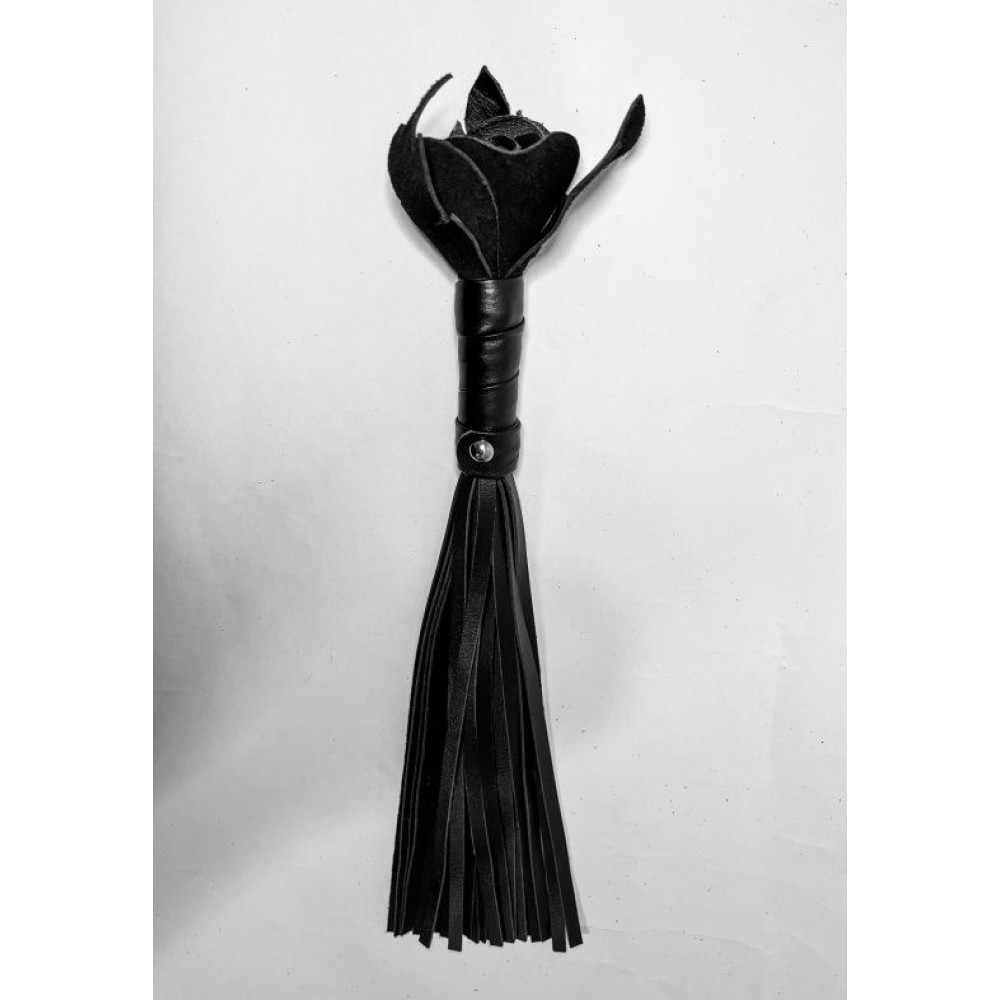 Черная кожаная плеть с розой в рукояти - 40 см.