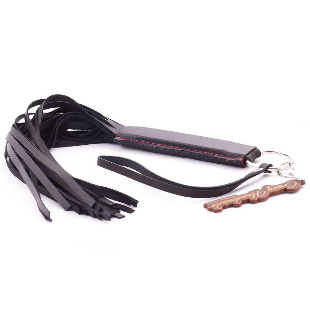 Черная кожаная плеть с удобной ручкой - 50 см.