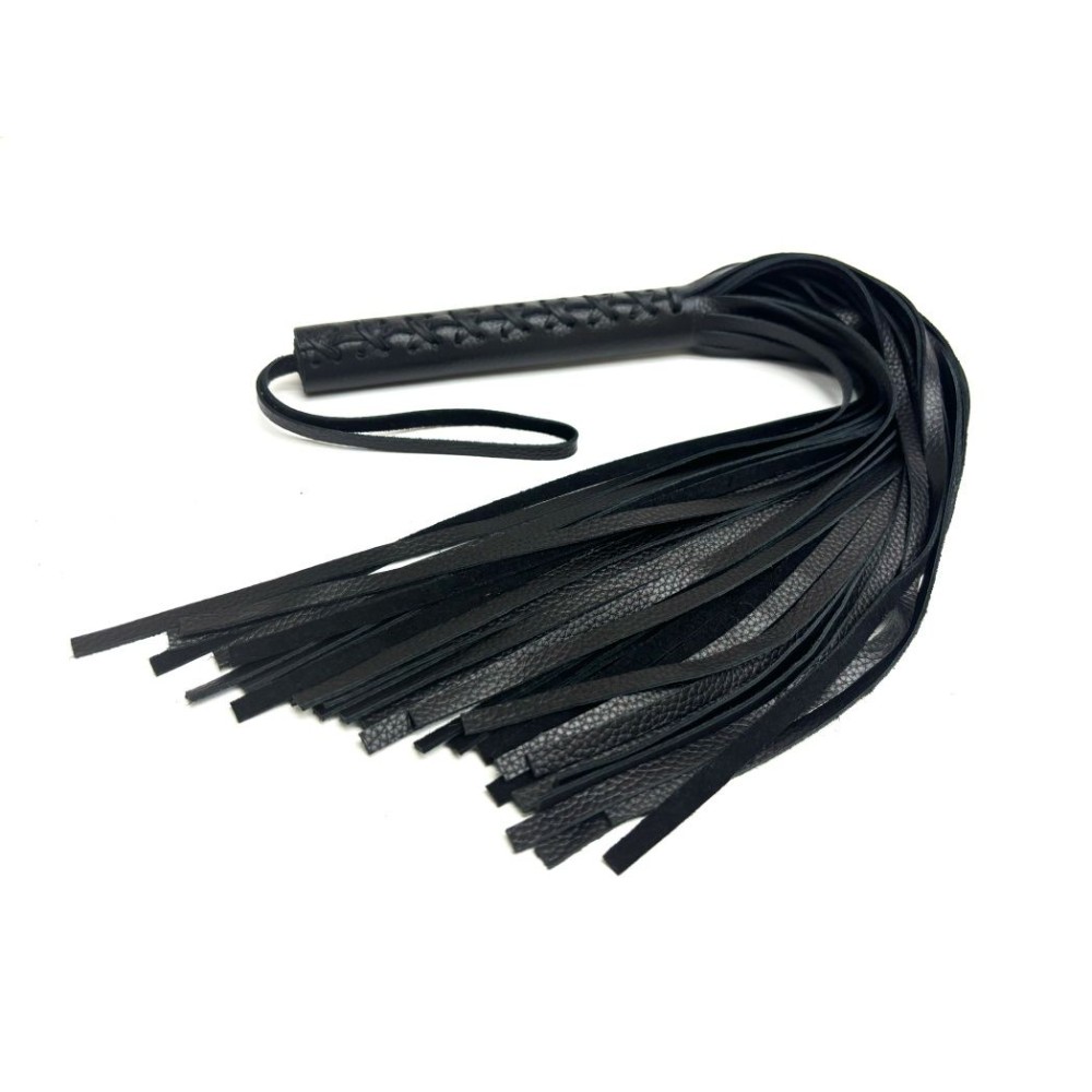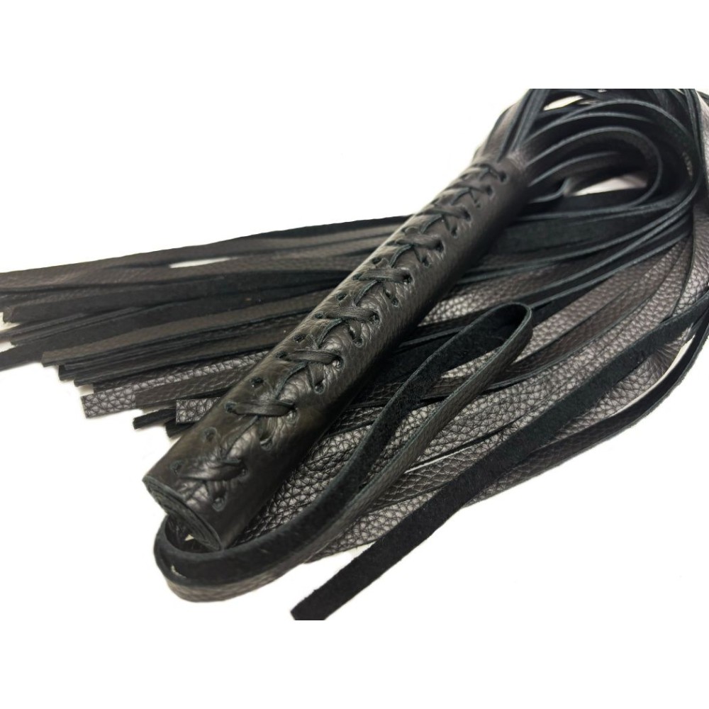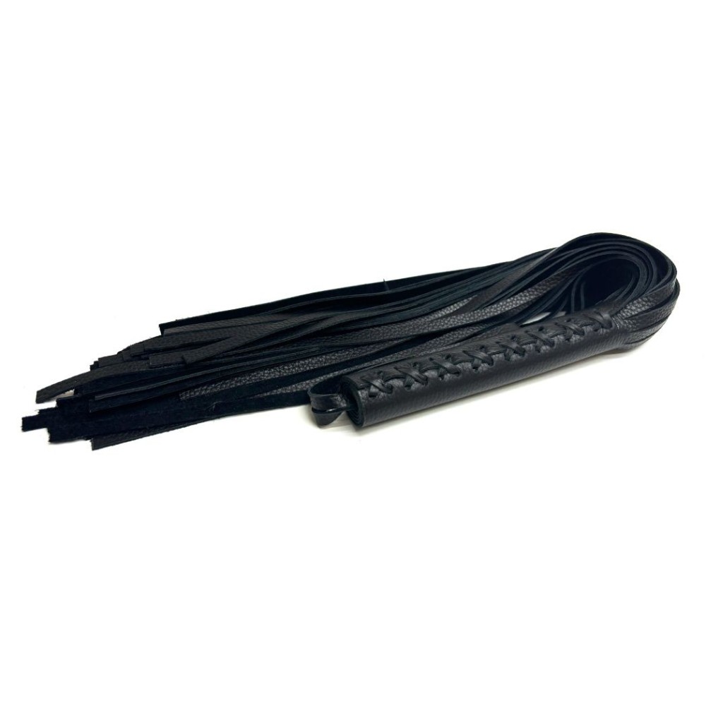 Черная многохвостовая плеть из мягкой кожи - 57 см.