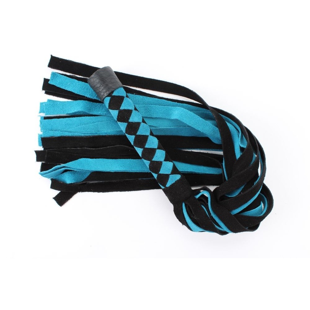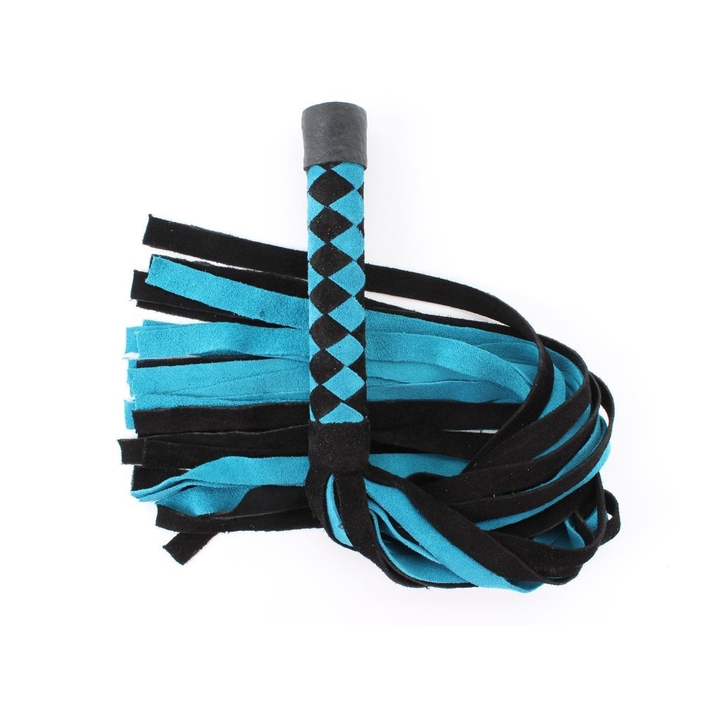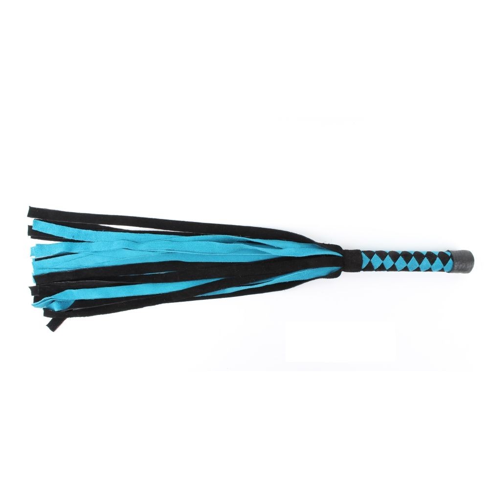 Черно-голубая замшевая плеть с ромбами на ручке - 60 см.