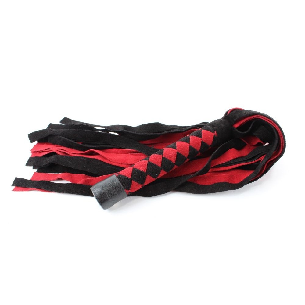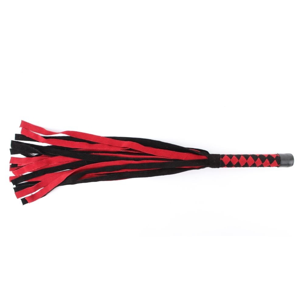 Черно-красная замшевая плеть с ромбами на рукояти - 60 см.