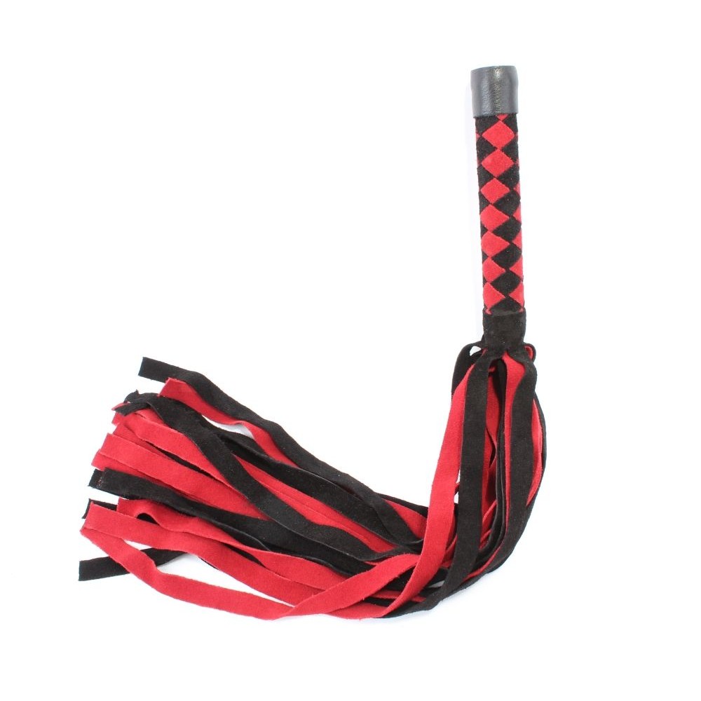Черно-красная замшевая плеть для БДСМ-практик. Длина 60 см идеально подходит для контроля дистанции. Рукоять с ромбовидным тиснением обеспечивает надежный хват. Натуральная кожа высшего качества, российское производство. Универсальна для партнеров любого пола. Доставляется без упаковки для вашего удобства.