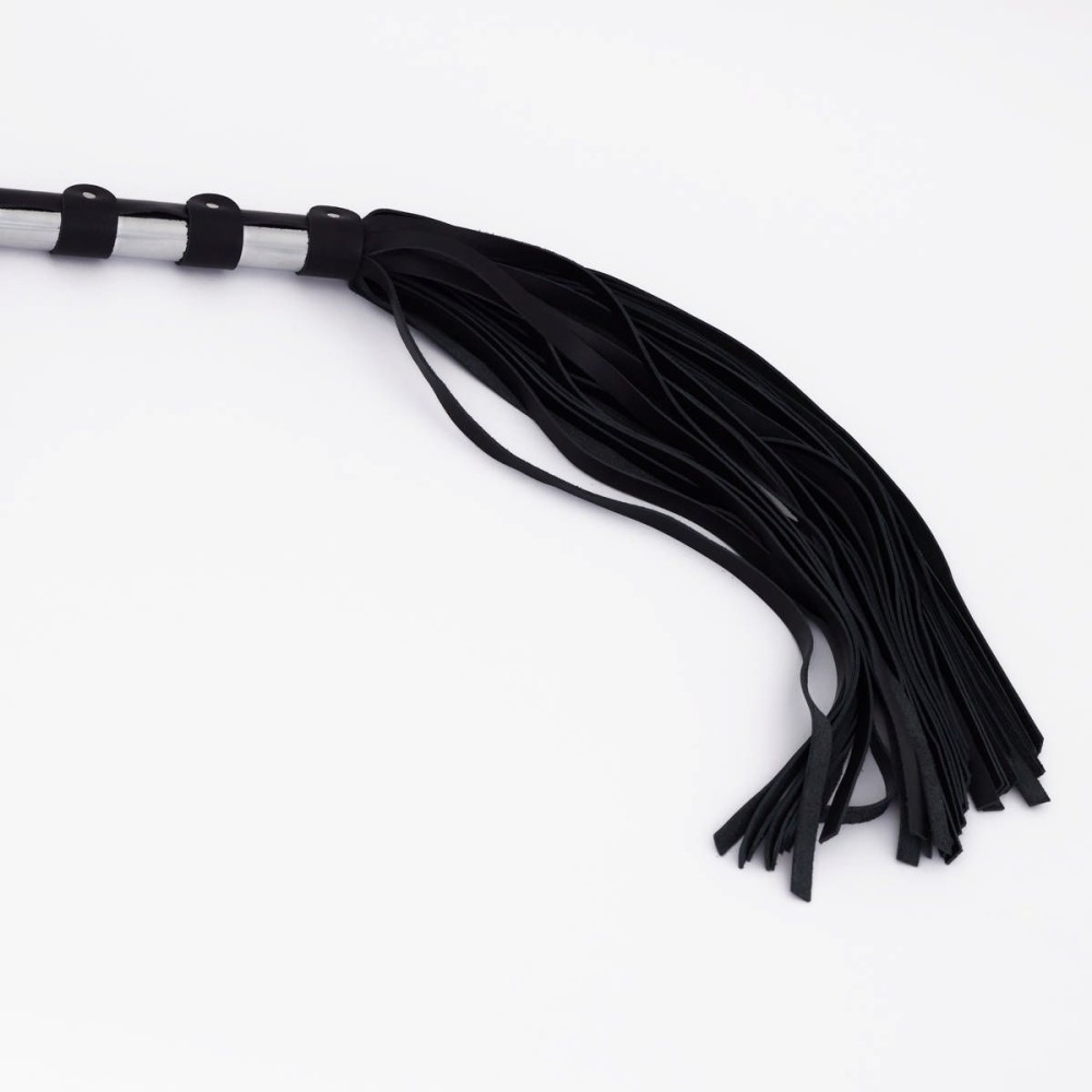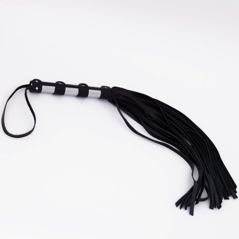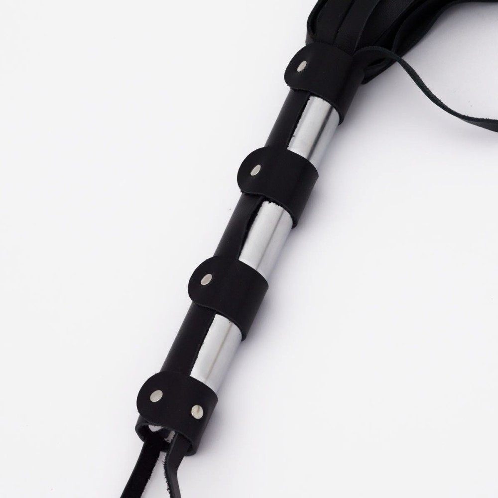Черный кожаный флоггер со стальной ручкой - 45 см.