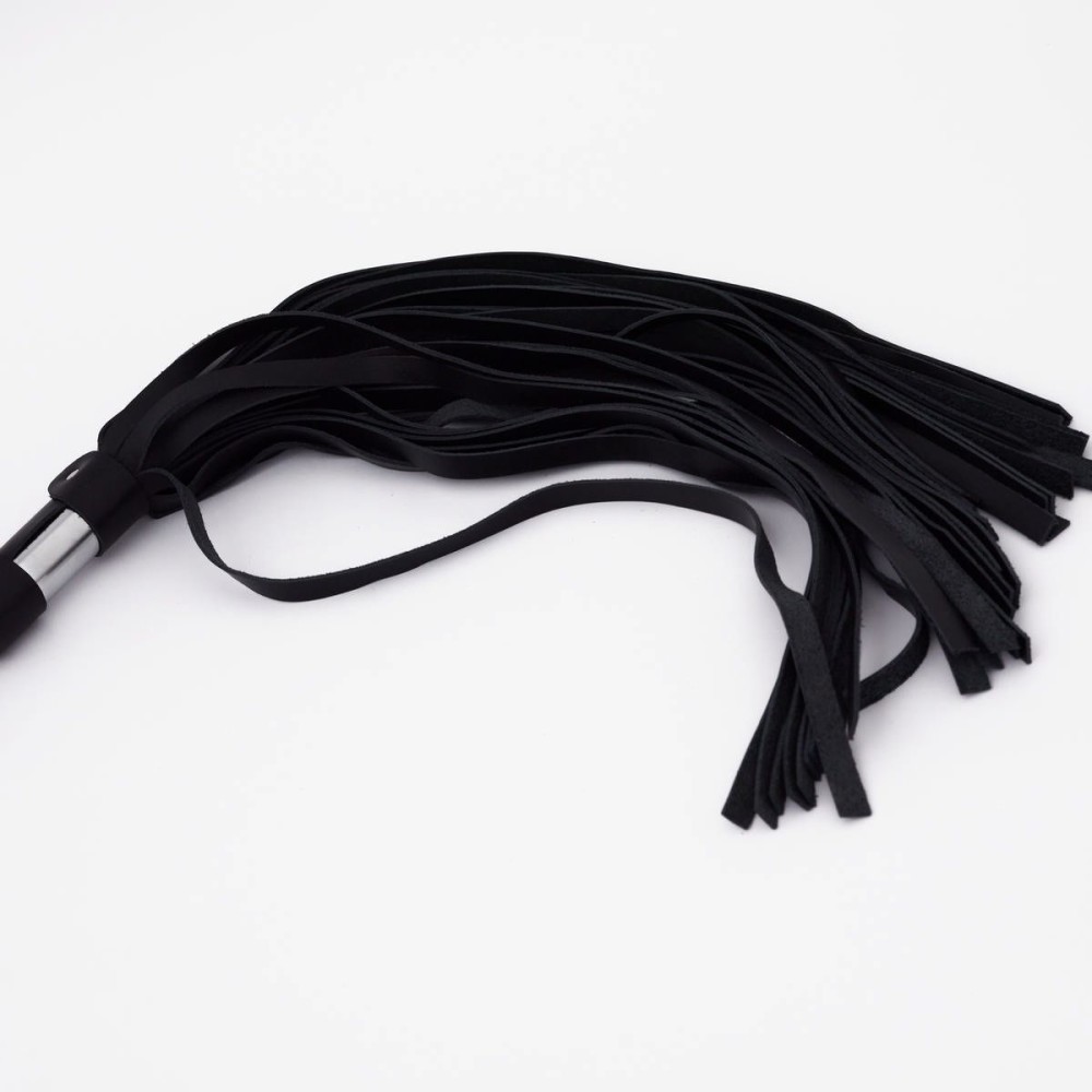 Черный кожаный флоггер со стальной ручкой длиной 45 см — профессиональный инструмент для БДСМ-практик. Изготовлен из комбинации натуральной кожи и металла, обеспечивающей прочность и приятные тактильные ощущения. Универсальная модель подходит для обоих полов, идеальна для ролевых игр и садомазохистских сценариев. Российское производство гарантирует контроль качества. Товар поставляется без упаковки. Длина 45 см оптимальна для контроля силы воздействия.