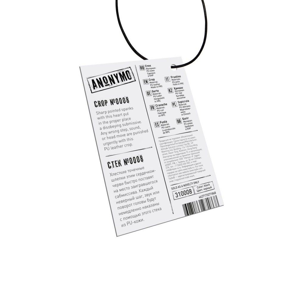 Элегантный и стильный аксессуар для взрослых игр, который сочетает в себе два функциональных элемента. С одной стороны - гладкий стек для чувственных прикосновений, с другой - нежное сердце из искусственной кожи для легких шлепков.
