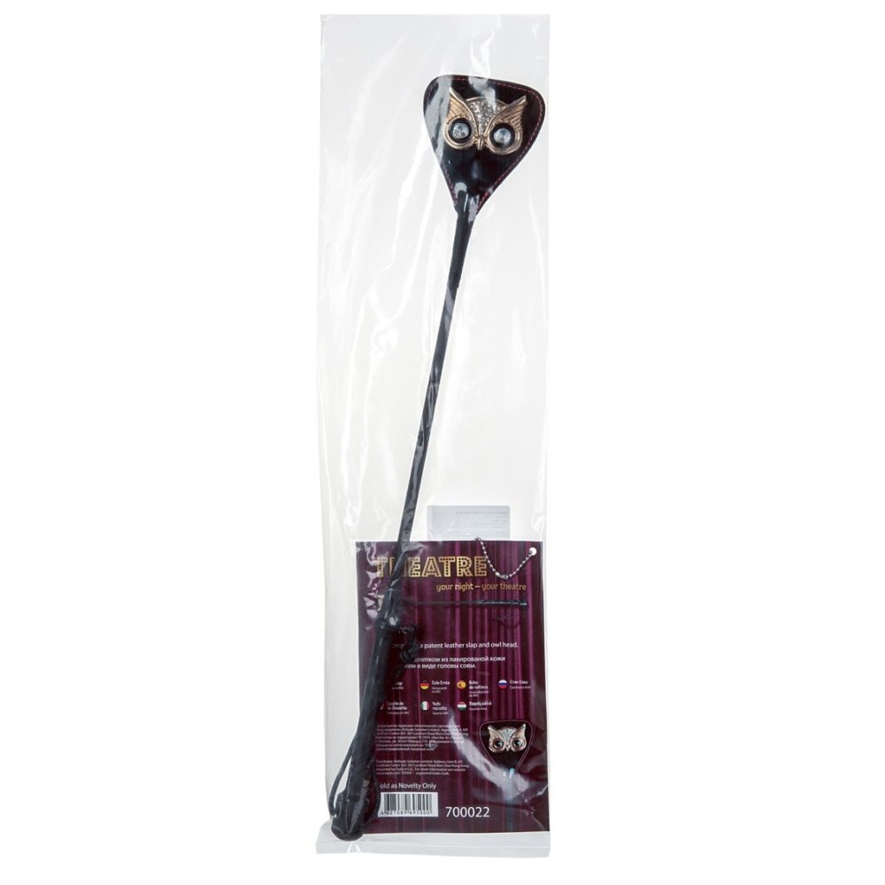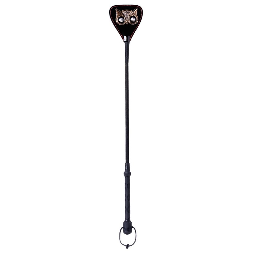 Элегантный и стильный аксессуар для взрослых игр, выполненный в готической эстетике. Чёрный стек длиной 55 см с изысканным кожаным наконечником украшен детализированной фигуркой совы - символом мудрости и таинственности.