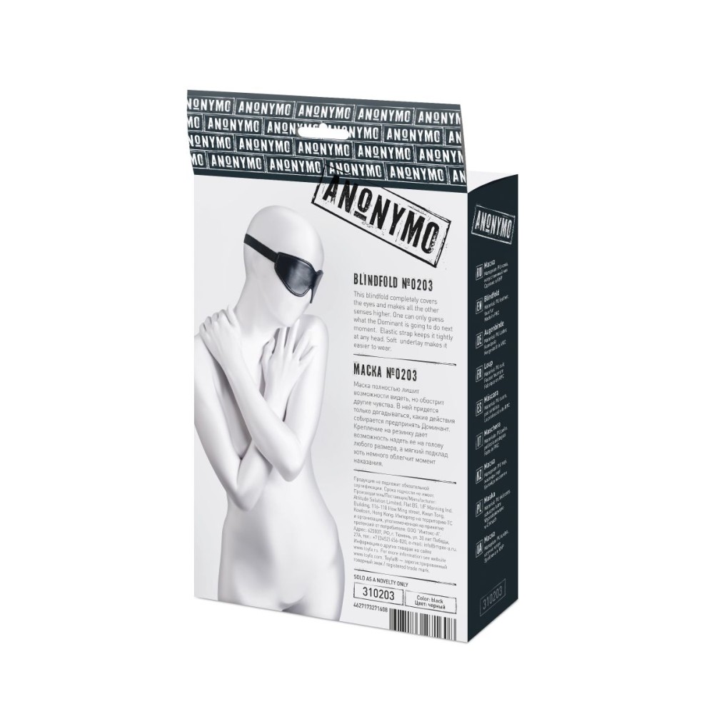 Маска длиной 26.5 см изготовлена из качественной искусственной кожи, обеспечивающей комфорт при длительном использовании. Входит в коллекцию Anonymo — серию товаров для раскрытия новых граней интимной жизни.
