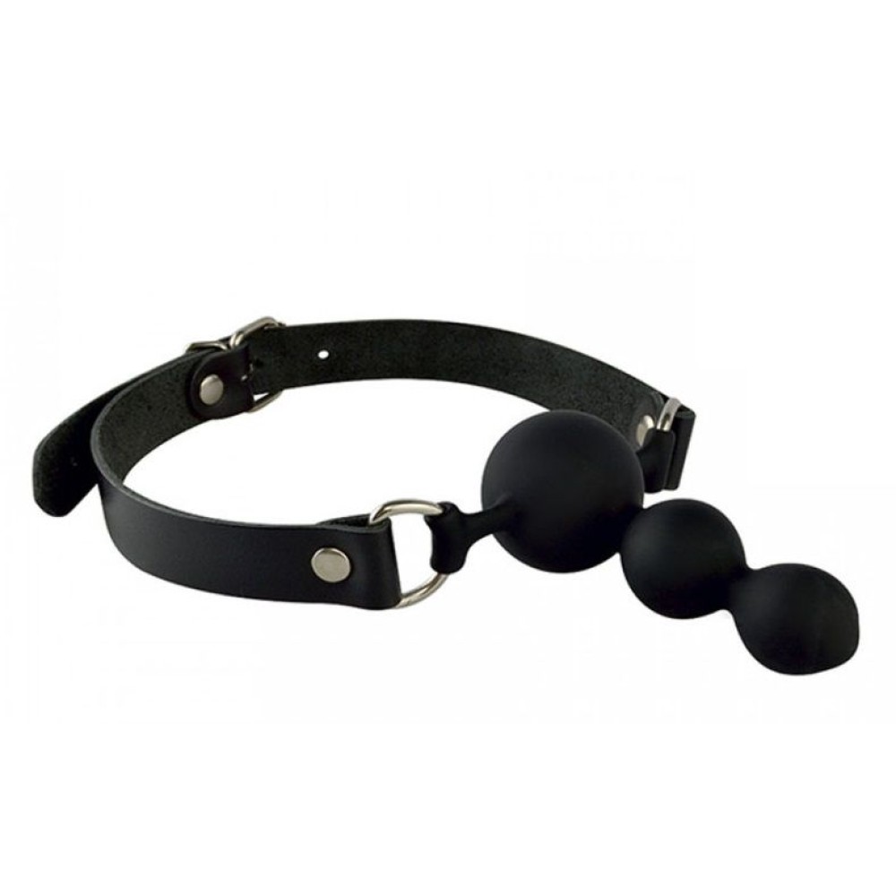 Кляп выполнен из гипоаллергенного силикона в форме ёлочки, обеспечивающей комфортную фиксацию. Натуральные кожаные ремешки регулируются под любой размер головы.
