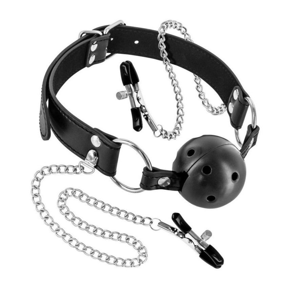 Технические характеристики Жесткий шар-кляп с зажимами для сосков