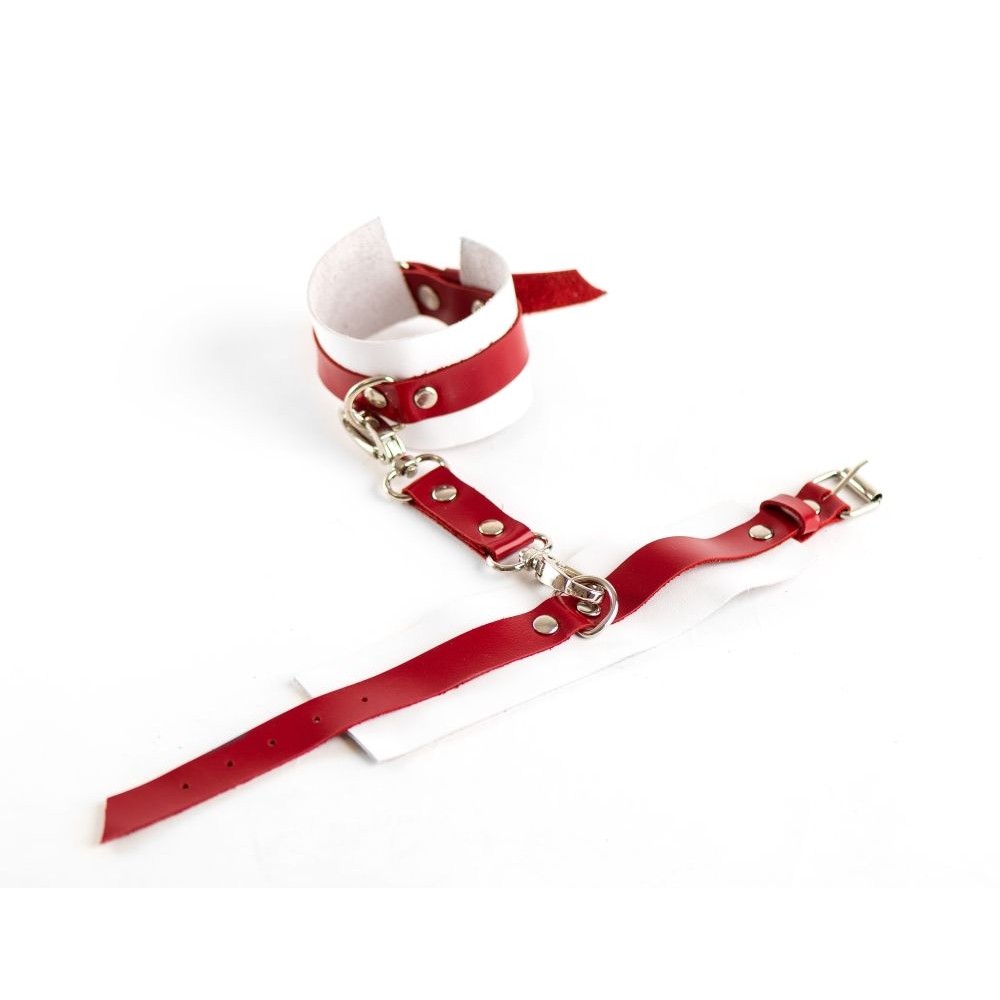 Мягкая, но прочная кожа обеспечивает комфорт во время использования, а надежные застежки гарантируют безопасность. Бело-красная цветовая гамма символизирует страсть и невинность, создавая особую атмосферу для ролевых игр. Подходят как для начинающих, так и для опытных любителей БДСМ.
