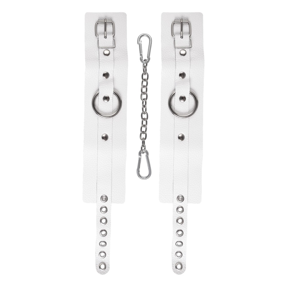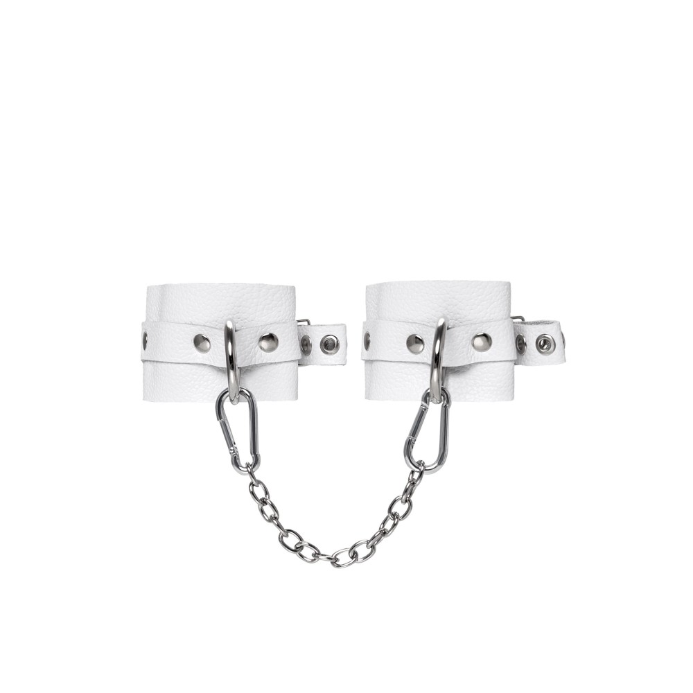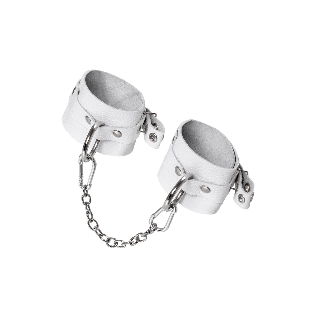 Белые мягкие кожаные оковы с люверсами — изысканный аксессуар для БДСМ-практик. Выполнены из натуральной кожи российского производства, отличаются особой мягкостью и приятной текстурой. Люверсы обеспечивают надежную фиксацию и удобство регулировки. Универсальный дизайн подходит для обоих партнеров. Идеальны для ролевых игр и расширения сексуальных границ. Поставляются без упаковки.