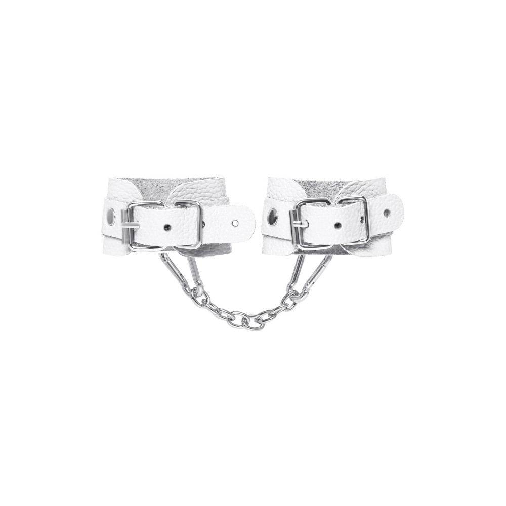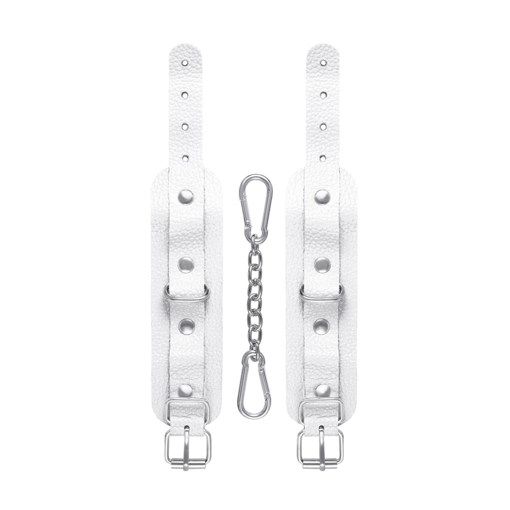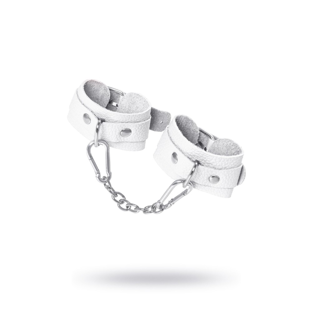 Идеально подходят для ролевых игр и экспериментов в садомазохизме. Мягкая кожа приятна на ощупь и не травмирует кожу. Стильный белый цвет добавляет эстетики интимным играм.
