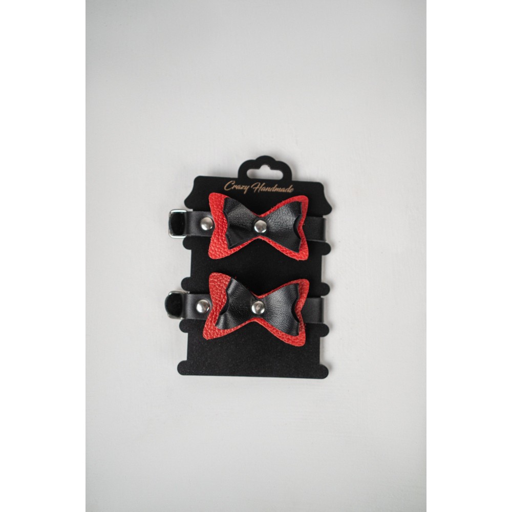Черно-красные кожаные наручники с бантиками