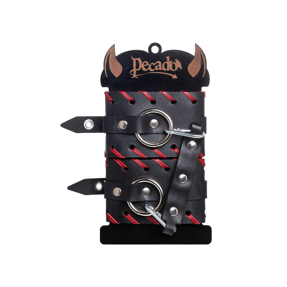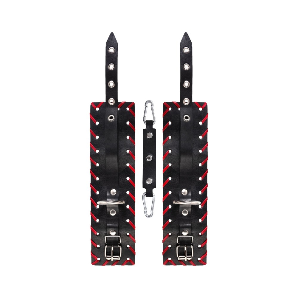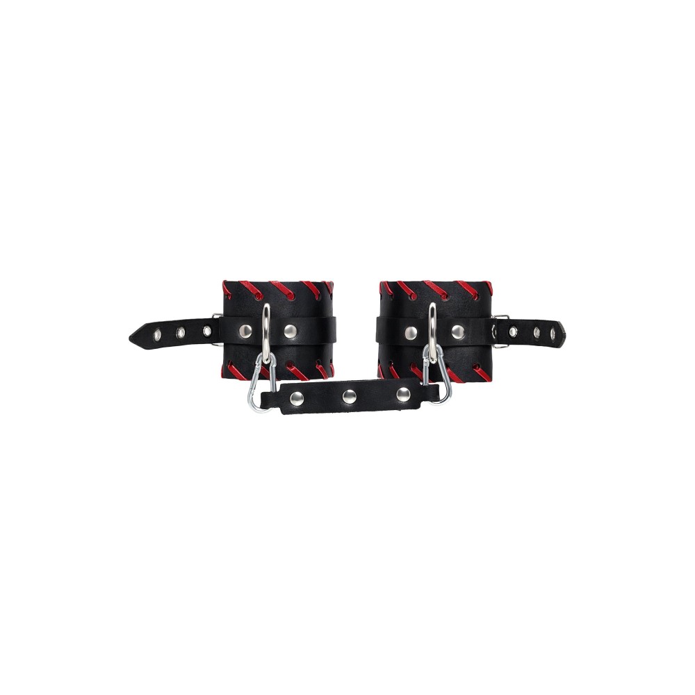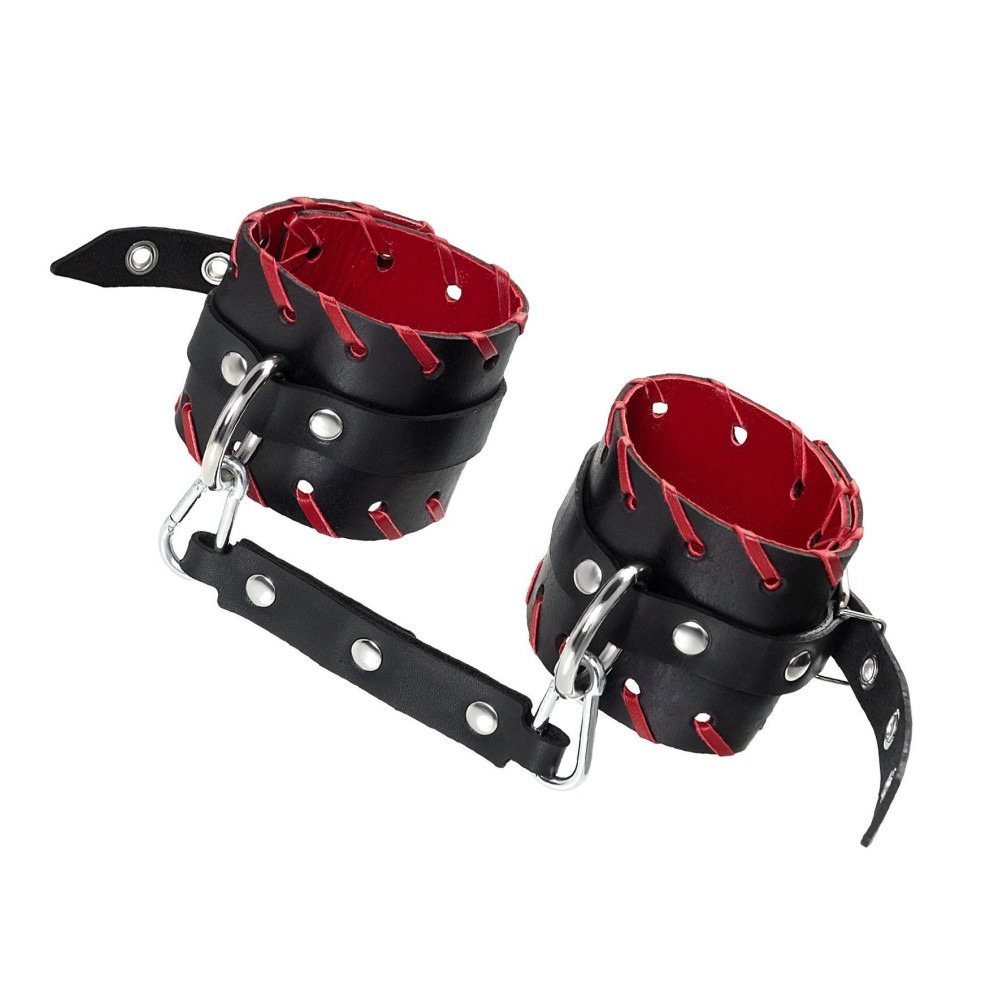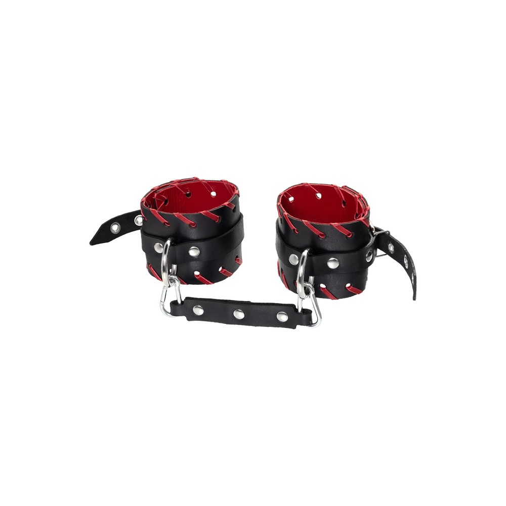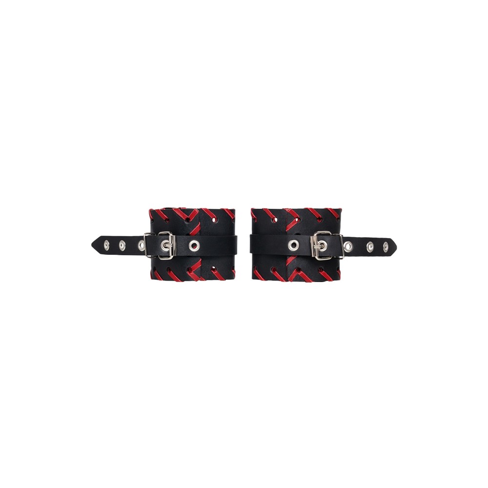 Эти стильные оковы сочетают в себе классические черный и страстный красный цвета, созданные для ценителей BDSM-практик. Изготовлены из качественной натуральной кожи, которая приятна на ощупь и долговечна в использовании.