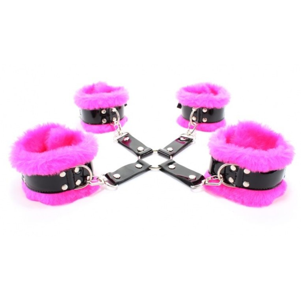 Технические характеристики Черно-розовая крестообразная меховая фиксация для рук и ног