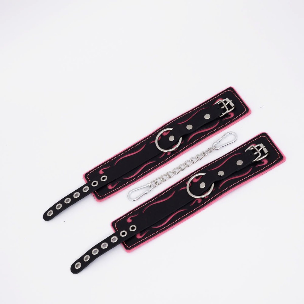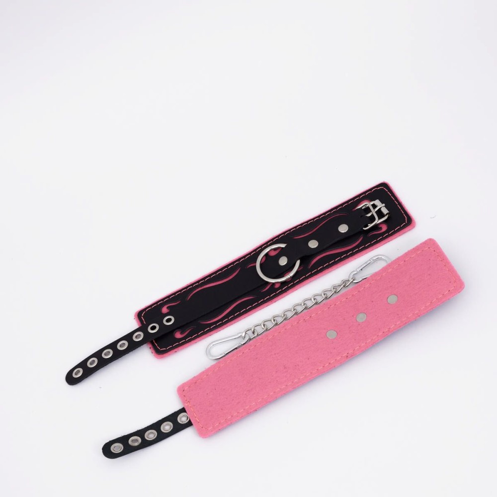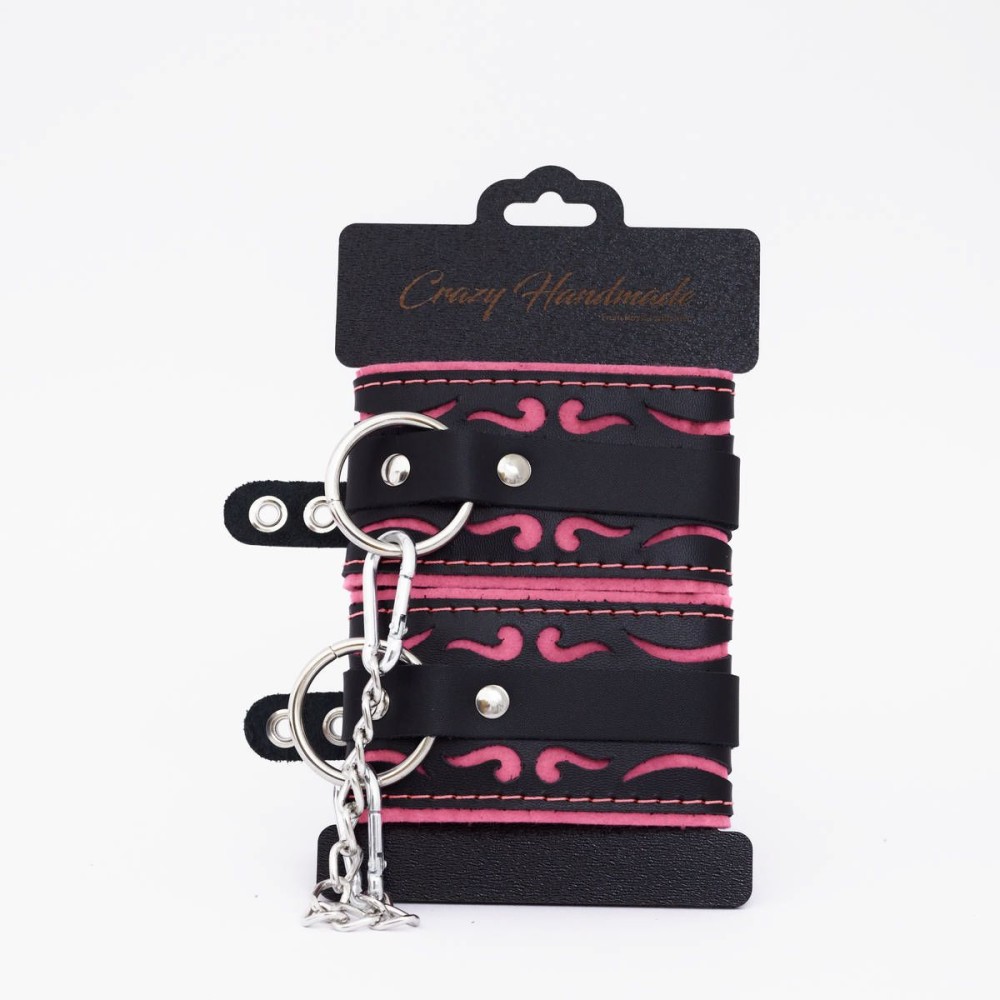Технические характеристики Черно-розовые кожаные оковы с розовой строчкой