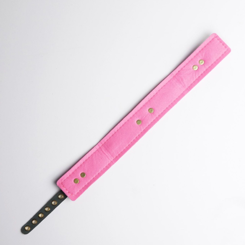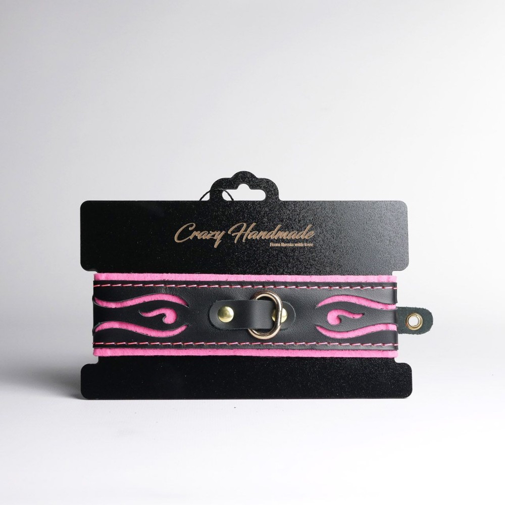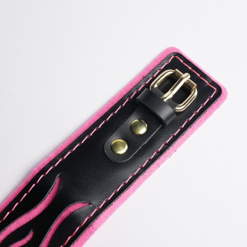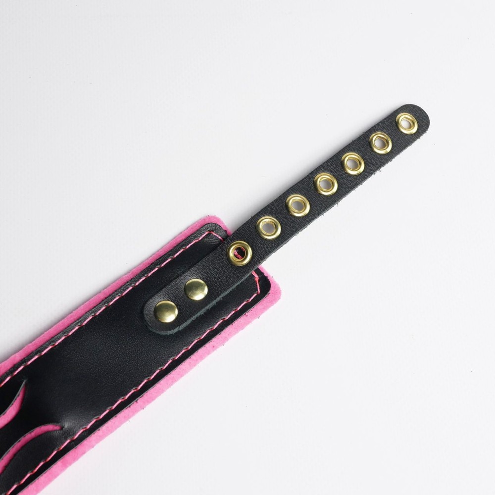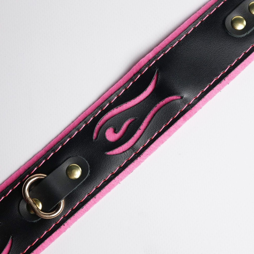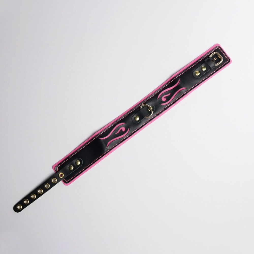 Черно-розовый ошейник с золотистой фурнитурой — стильный аксессуар для БДСМ-практик. Изготовлен из натуральной кожи, сочетает элегантность и функциональность. Длина 44 см подходит для комфортного использования. Универсальный дизайн для обоих партнеров. Идеален для ролевых игр и дополнения интимного гардероба. Поставляется без упаковки. Российское производство и бренд.