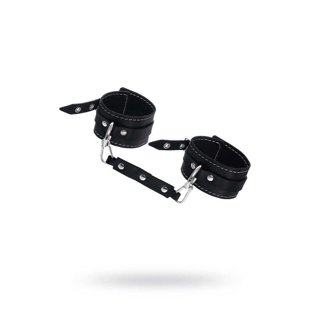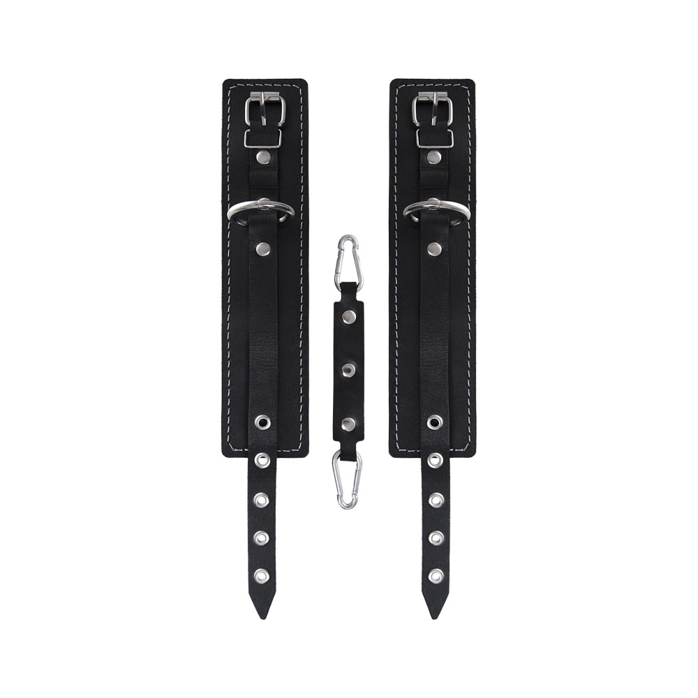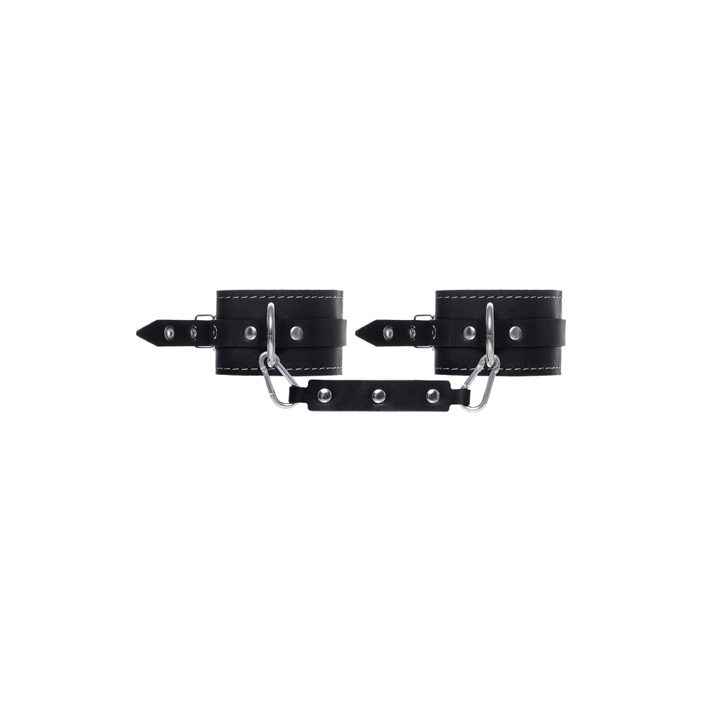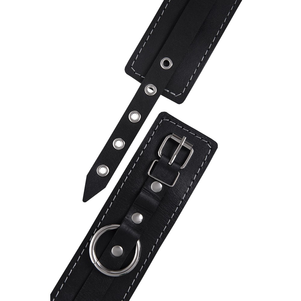 Технические характеристики Черные двухслойные кожаные оковы с белой строчкой