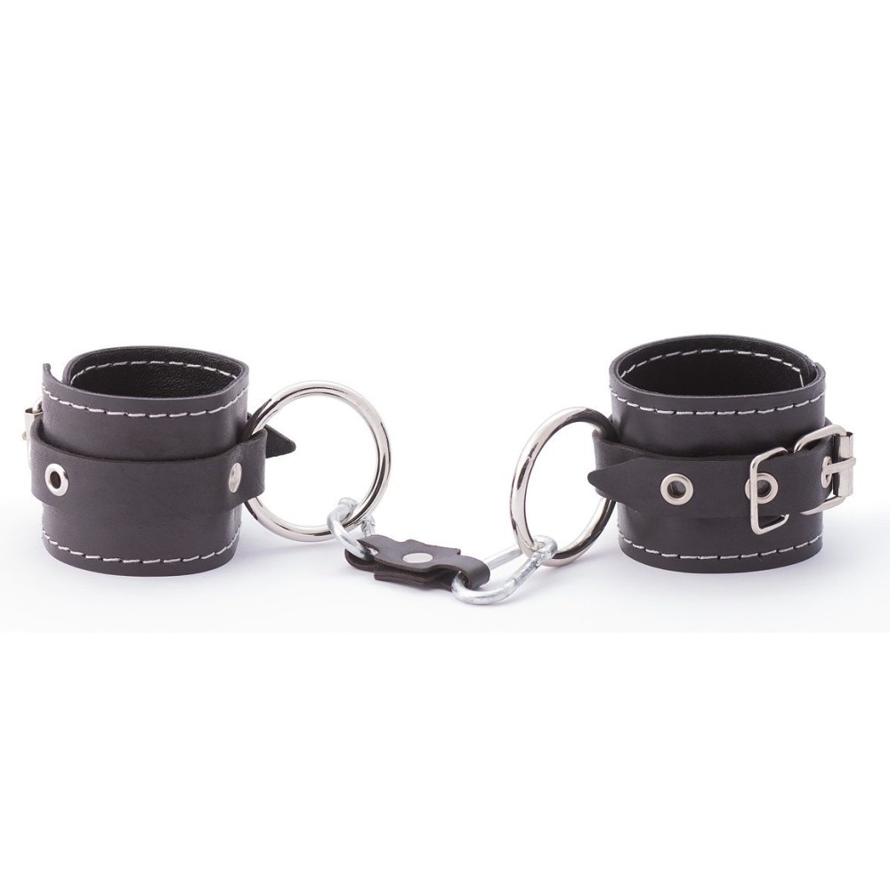 Черные кожаные наручники с контрастной строчкой — элегантный аксессуар для БДСМ-практик. Изготовлены из натуральной кожи российского производства с детальной прострочкой для эстетической привлекательности и повышенной прочности. Универсальный дизайн подходит для обоих партнеров. Функциональная садомазохистская атрибутика для безопасного ограничения движений. Поставляется в прозрачной упаковке, сохраняющей товарный вид изделия. Идеальны для экспериментов с доминированием и подчинением в интимных отношениях.