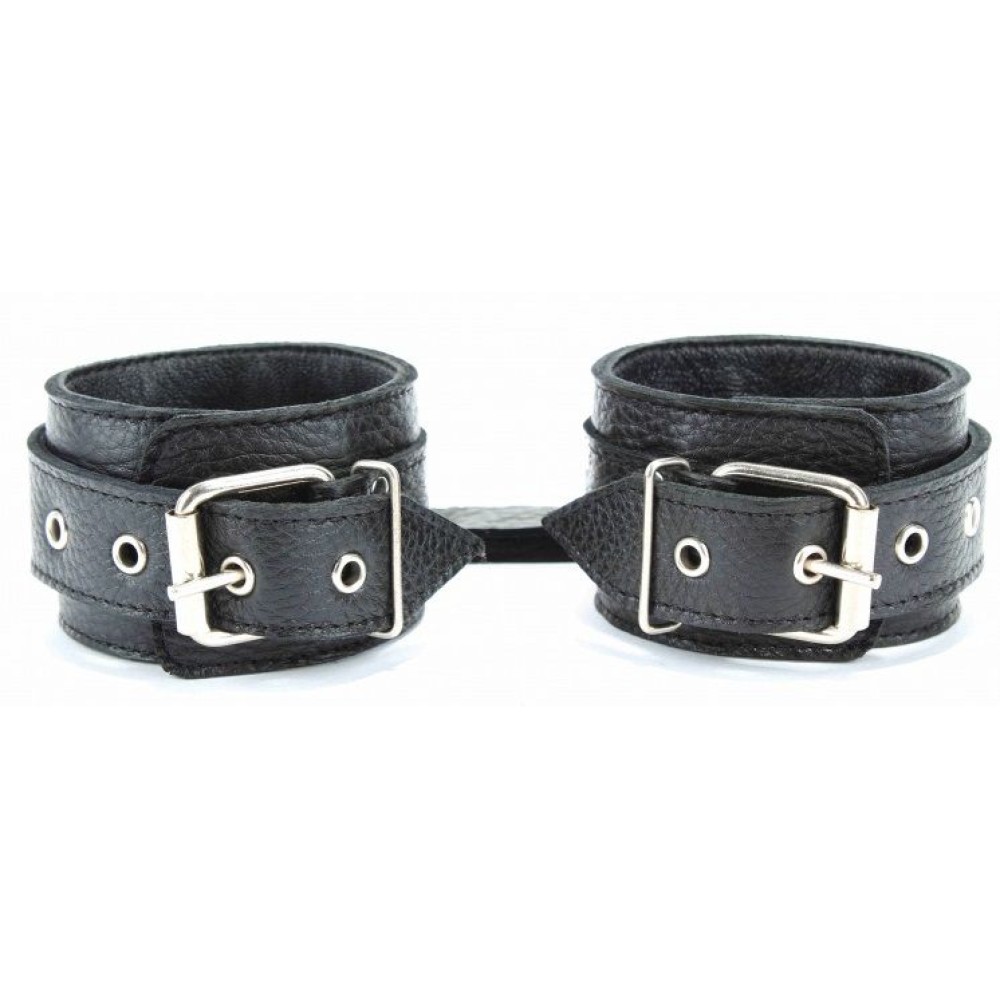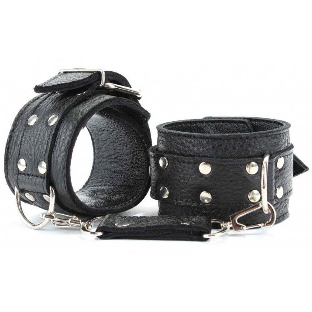 Черные кожаные наручники с пряжкой — элегантный аксессуар для БДСМ-практик. Изготовлены из натуральной кожи российского производства, подходят для обоих партнеров. Надежная пряжка обеспечивает комфортную фиксацию, а классический дизайн делает их универсальным элементом интимных игр. Функциональная садомазохистская атрибутика без упаковки — для смелых экспериментов в спальне.