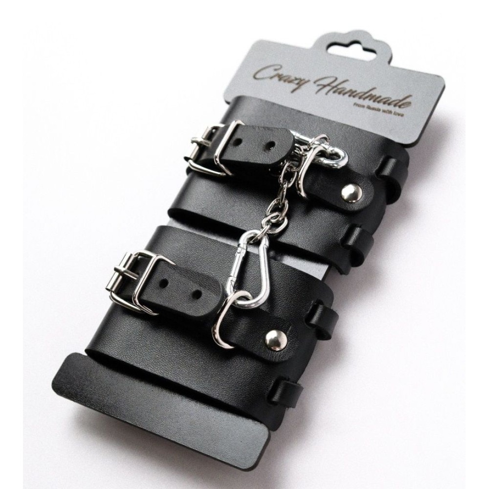 Черные кожаные наручники с ремешками — элегантный аксессуар для БДСМ-практик. Изготовлены из натуральной кожи российского производства, обеспечивают комфорт и надежную фиксацию. Универсальный дизайн подходит для обоих партнеров. Функциональная садомазохистская атрибутика для расширения границ интимных игр. Поставляются в прозрачной упаковке.