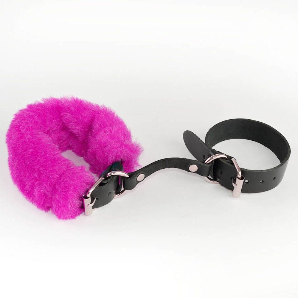 Черные кожаные наручники со съемной ярко-розовой опушкой — элегантный аксессуар для BDSM-практик. Модель выполнена из комбинации премиальных материалов: натуральная кожа обеспечивает долговечность, металлическая фурнитура гарантирует надежную фиксацию, а съемный меховой элемент розового цвета добавляет тактильный комфорт и визуальную эстетику. Универсальный дизайн подходит для всех гендеров. Функциональная садомазохистская атрибутика для расширения границ интимных экспериментов. Поставляется в прозрачной упаковке, сохраняющей целостность изделия. Коллекция: BDSM accessories. Производство и бренд: Россия.
