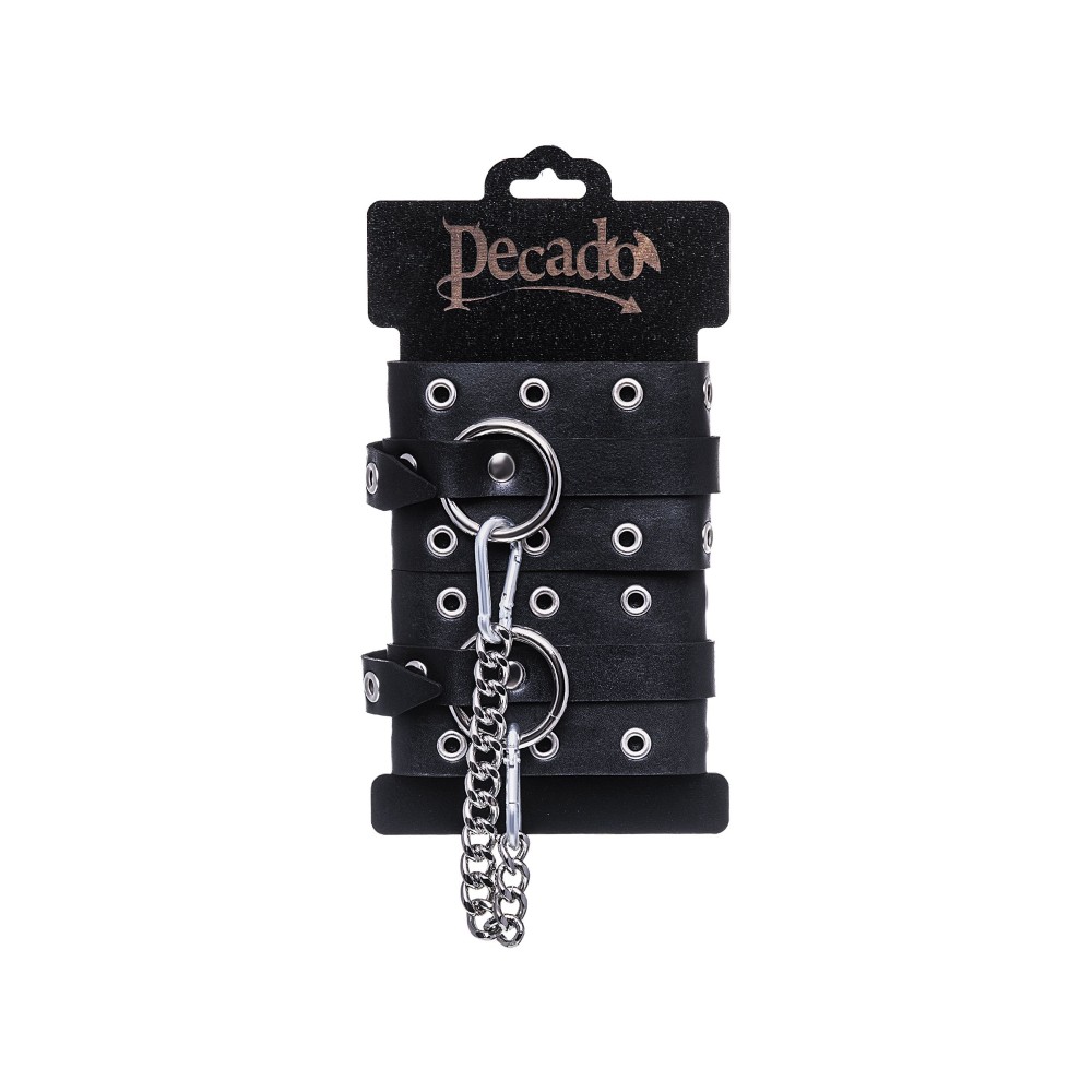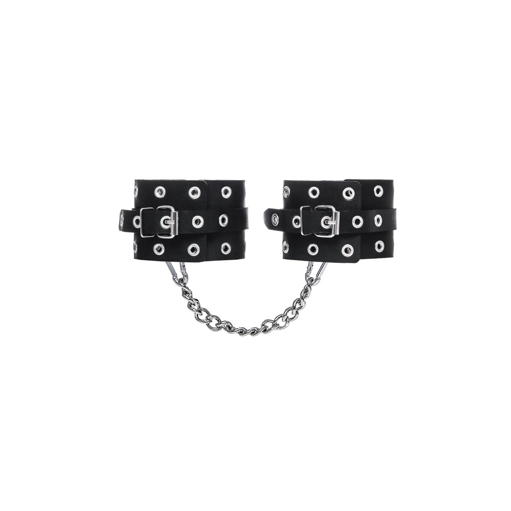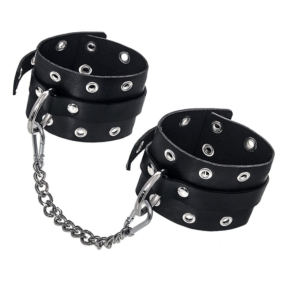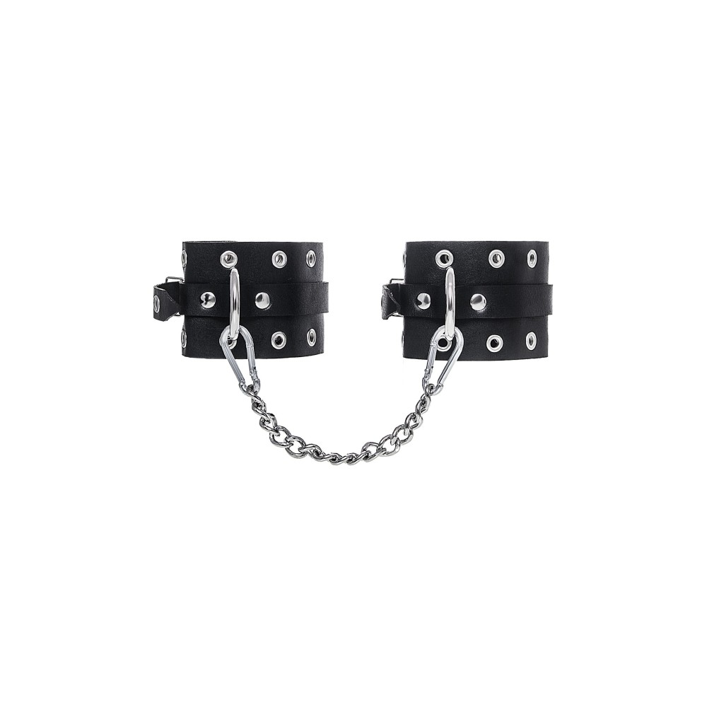 Технические характеристики Черные кожаные однослойные оковы с люверсами